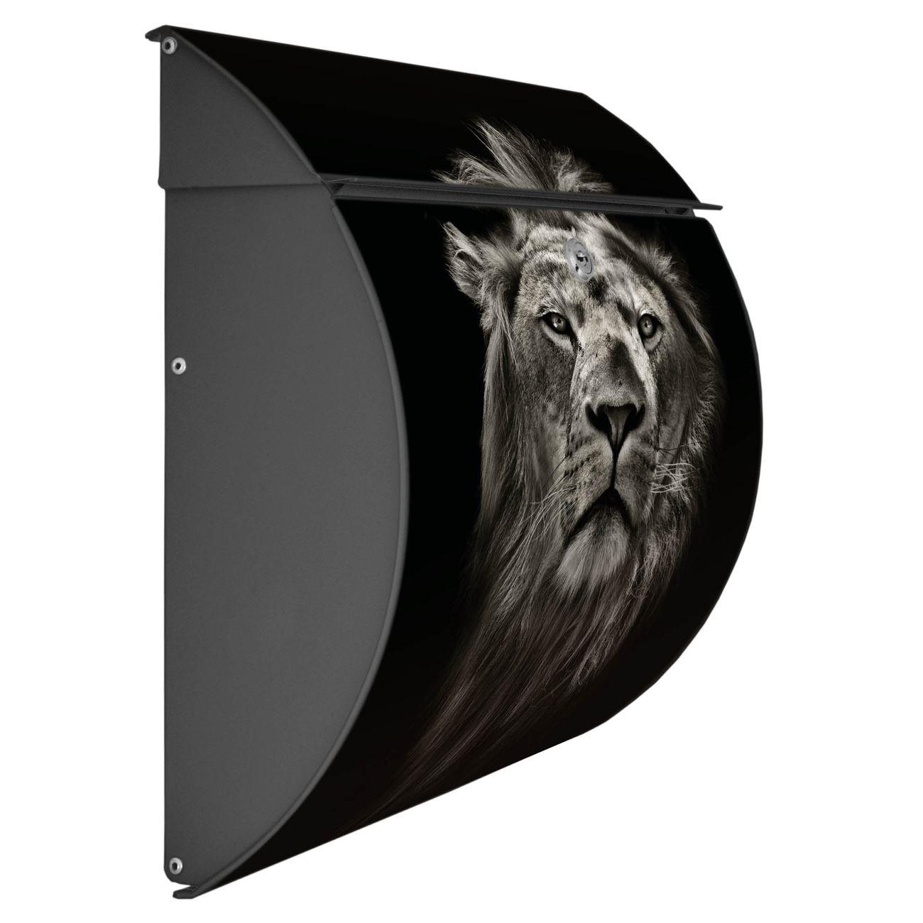 Der geschwungene Burg Wächter Briefkasten Toscana mit Motiv Löwe Porträt bietet Ihnen mit seinem großen Fassungsvermögen genügend Platz auch für große A4 Sendungen. Auf Wunsch können Sie bei uns den passenden Standfuß bestellen und so aus dem Wandbriefkasten einen Standbriefkasten machen. Der integrierte Öffnungsstopp ermöglicht eine einfache Handhabung beim Entnehmen der Post.