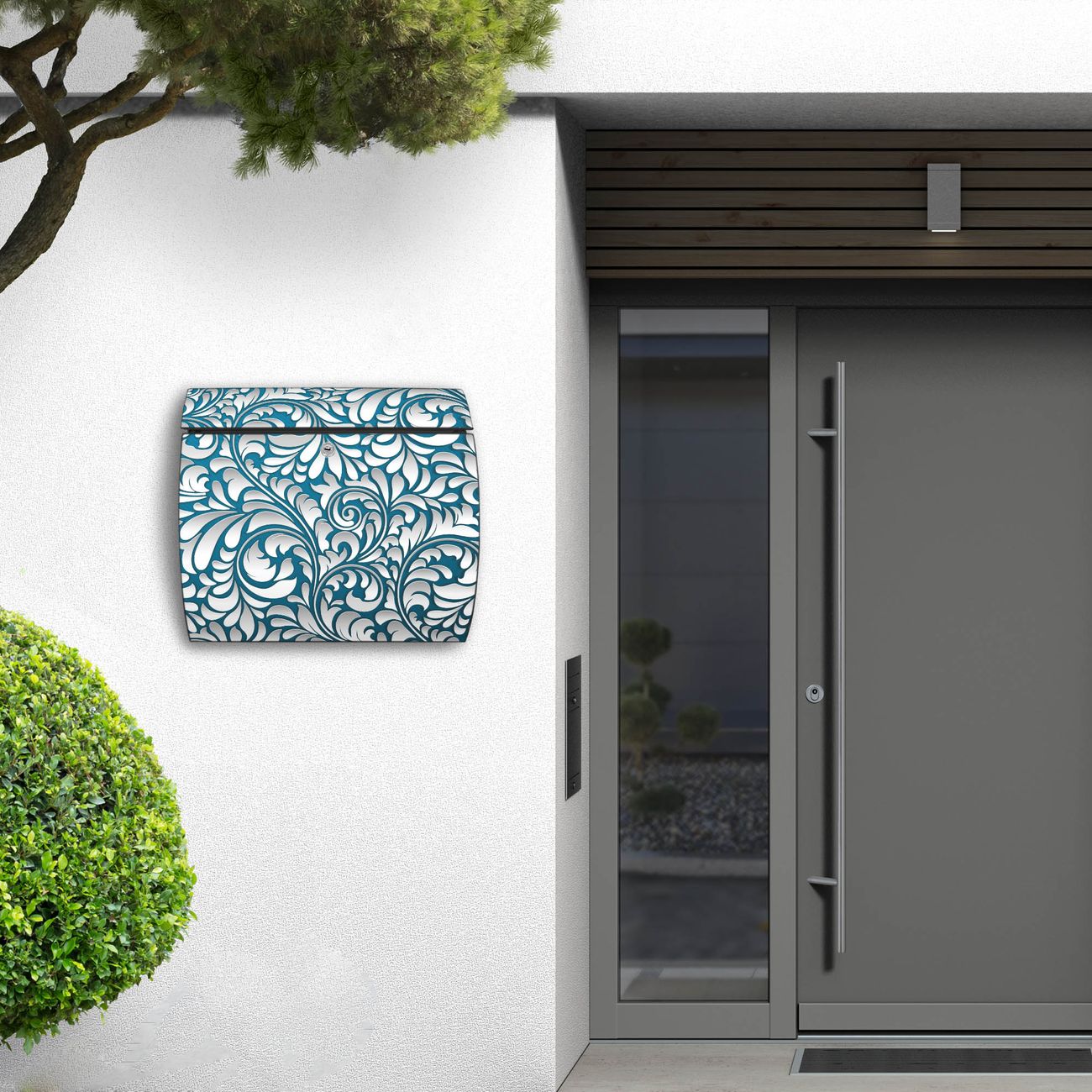 FUNKTION: DESIGN: Das Burg Wächter Modell Toscana mit Motiv Opulente Ranke hat ein sehr ansprechendes und zeitloses Design und ist besonderes wetterfest. Heben Sie Sich von der tristen grauen Masse ab, ohne auf Funktionalität zu verzichten. Wir bieten Ihnen ebenfalls Namensschilder, bereits beschriftet oder frei zu beschriften, und verschiedene selbst gestaltete Bitte-Keine-Werbung-Aufkleber. DETAILS: Der Postkasten besteht aus vollflächig verzinktem Stahl welcher in Anthrazit oder Weiß lackiert wurde oder aus Edelstahl (je nach gewählter Variante). Das Motiv besteht aus einer wetter- und UV-festen Folie, die mit einem Schutzlaminat überzogen ist, durch die Ihren Briefkasten zusätzlich vor Kratzern geschützt ist und auf den Briefkasten kaschiert wurde. Sie erhalten zu Ihrem neuen Design Briefkasten 2 Schlüssel sowie das passende Montagematerial. BANJADO: Ihr Briefkasten wird von Burg Wächter in Deutschland gefertigt und in unserer kleinen Manufaktur von Hand veredelt. Die Motivfolie ist lösungsmittelfrei und schutzlaminiert, dies sorgt für einen langen Halt. Wir legen großen Wert auf die Verbindung von Funktionalität und Design. Sie erhalten besondere Handarbeit aus Sachsen und Made in Germany.
