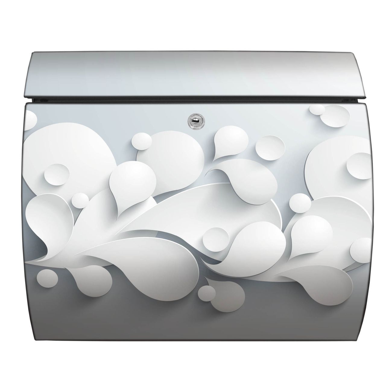 FUNKTION: DESIGN: Das Burg Wächter Modell Toscana mit Motiv Papiertropfen hat ein sehr ansprechendes und zeitloses Design und ist besonderes wetterfest. Heben Sie Sich von der tristen grauen Masse ab, ohne auf Funktionalität zu verzichten. Wir bieten Ihnen ebenfalls Namensschilder, bereits beschriftet oder frei zu beschriften, und verschiedene selbst gestaltete Bitte-Keine-Werbung-Aufkleber. DETAILS: Der Postkasten besteht aus vollflächig verzinktem Stahl welcher in Anthrazit oder Weiß lackiert wurde oder aus Edelstahl (je nach gewählter Variante). Das Motiv besteht aus einer wetter- und UV-festen Folie, die mit einem Schutzlaminat überzogen ist, durch die Ihren Briefkasten zusätzlich vor Kratzern geschützt ist und auf den Briefkasten kaschiert wurde. Sie erhalten zu Ihrem neuen Design Briefkasten 2 Schlüssel sowie das passende Montagematerial. BANJADO: Ihr Briefkasten wird von Burg Wächter in Deutschland gefertigt und in unserer kleinen Manufaktur von Hand veredelt. Die Motivfolie ist lösungsmittelfrei und schutzlaminiert, dies sorgt für einen langen Halt. Wir legen großen Wert auf die Verbindung von Funktionalität und Design. Sie erhalten besondere Handarbeit aus Sachsen und Made in Germany.