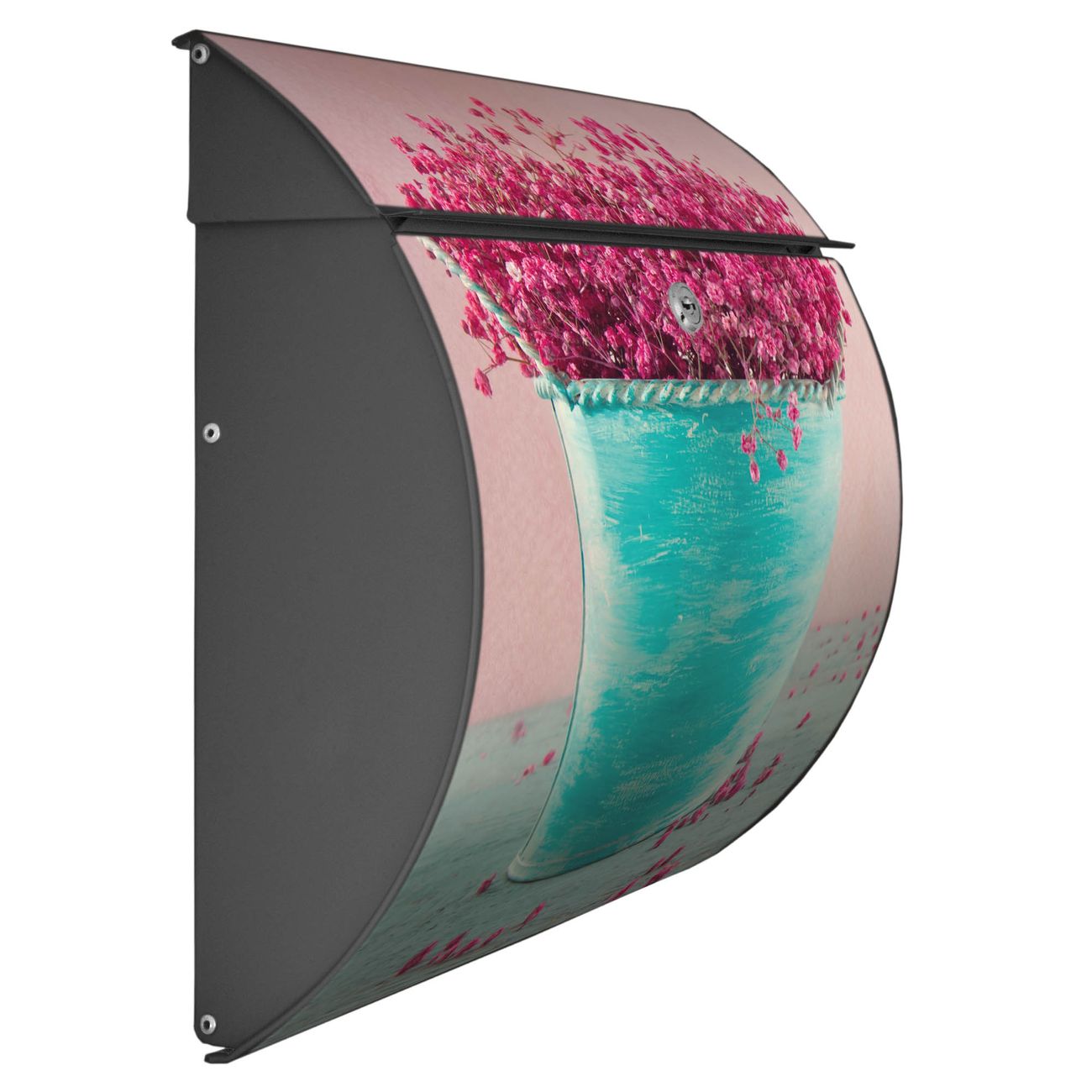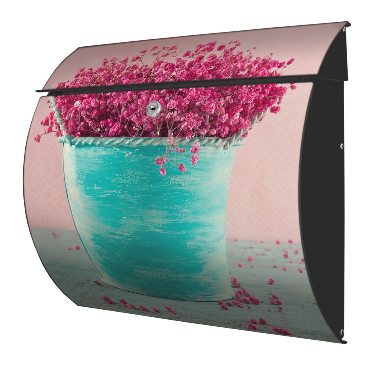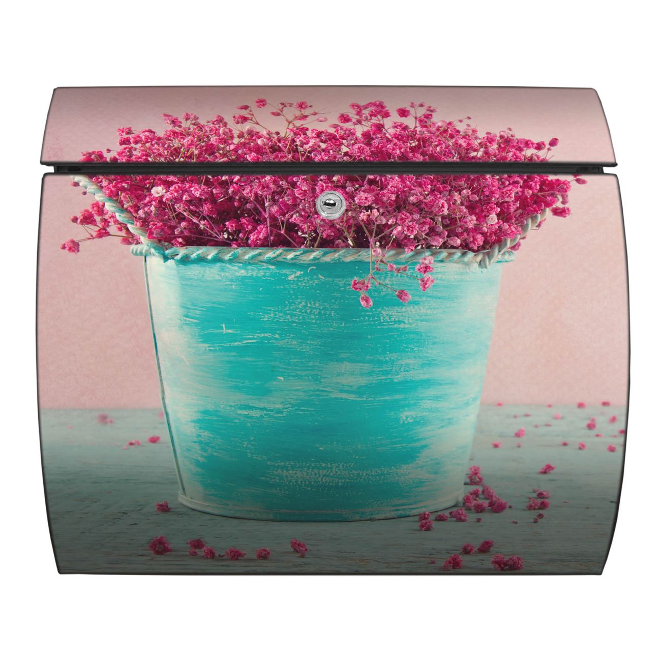 Der geschwungene Burg Wächter Briefkasten Toscana mit Motiv Pinke Trockenblumen bietet Ihnen mit seinem großen Fassungsvermögen genügend Platz auch für große A4 Sendungen. Auf Wunsch können Sie bei uns den passenden Standfuß bestellen und so aus dem Wandbriefkasten einen Standbriefkasten machen. Der integrierte Öffnungsstopp ermöglicht eine einfache Handhabung beim Entnehmen der Post.