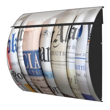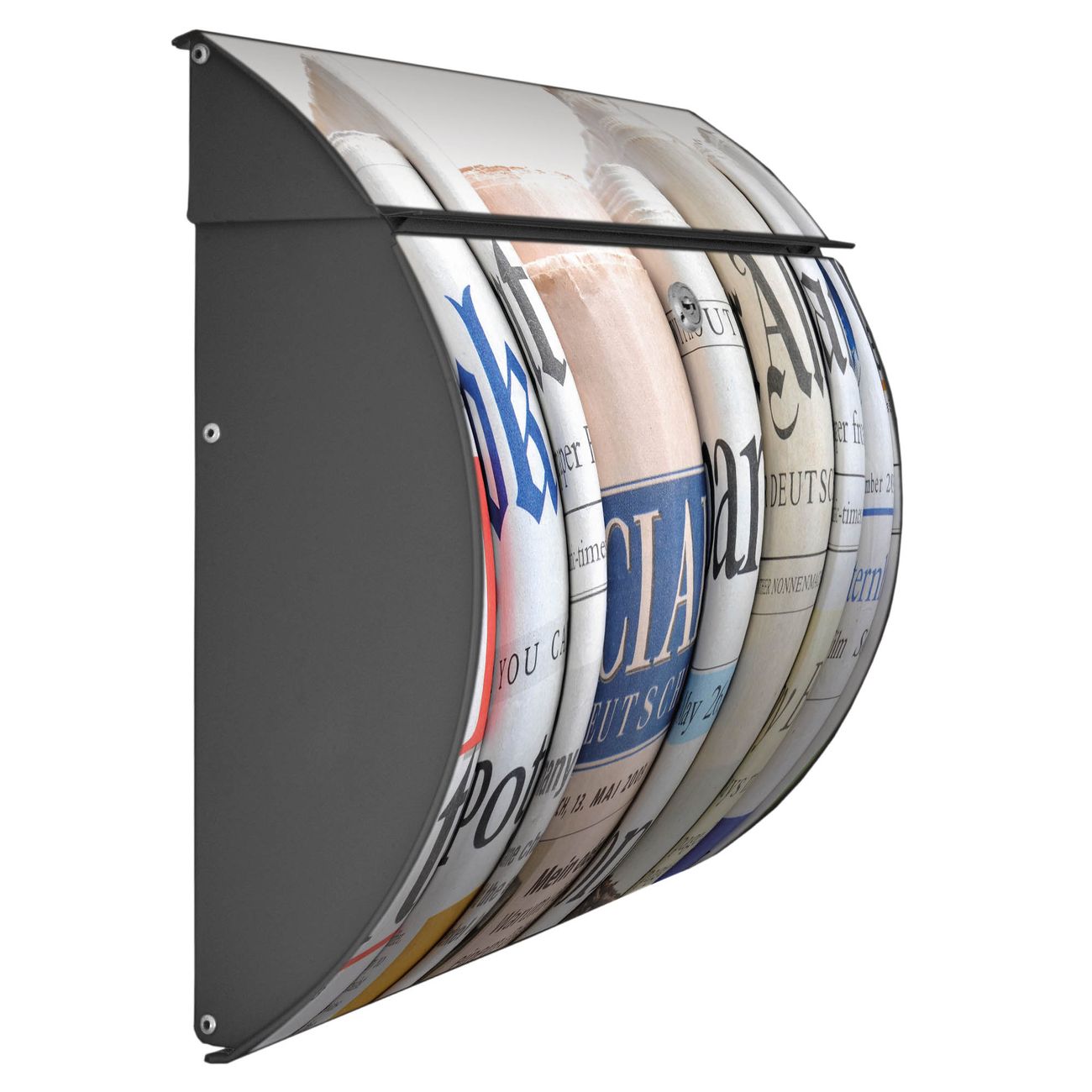 Der geschwungene Burg Wächter Briefkasten Toscana mit Motiv Presse bietet Ihnen mit seinem großen Fassungsvermögen genügend Platz auch für große A4 Sendungen. Auf Wunsch können Sie bei uns den passenden Standfuß bestellen und so aus dem Wandbriefkasten einen Standbriefkasten machen. Der integrierte Öffnungsstopp ermöglicht eine einfache Handhabung beim Entnehmen der Post.