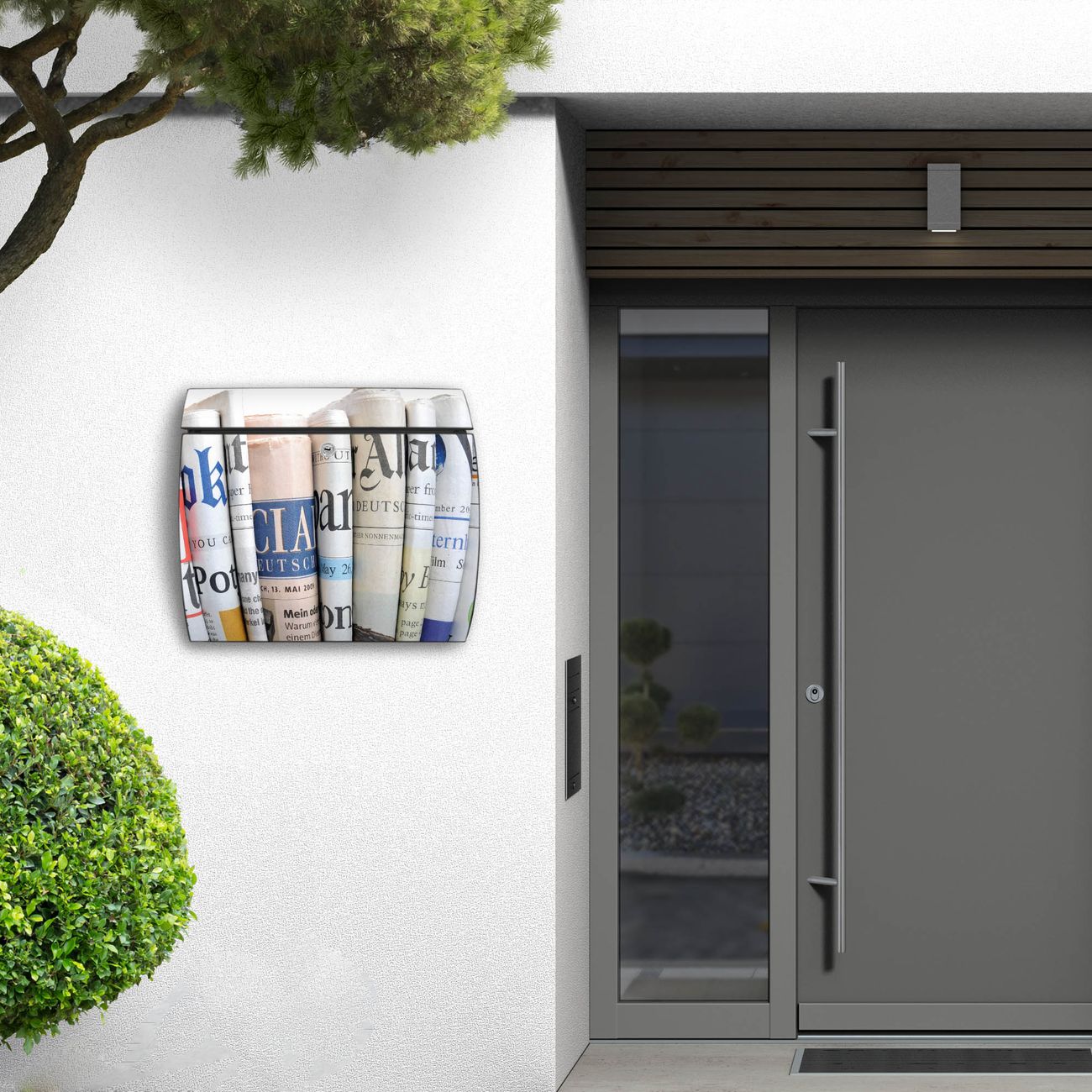 FUNKTION: DESIGN: Das Burg Wächter Modell Toscana mit Motiv Presse hat ein sehr ansprechendes und zeitloses Design und ist besonderes wetterfest. Heben Sie Sich von der tristen grauen Masse ab, ohne auf Funktionalität zu verzichten. Wir bieten Ihnen ebenfalls Namensschilder, bereits beschriftet oder frei zu beschriften, und verschiedene selbst gestaltete Bitte-Keine-Werbung-Aufkleber. DETAILS: Der Postkasten besteht aus vollflächig verzinktem Stahl welcher in Anthrazit oder Weiß lackiert wurde oder aus Edelstahl (je nach gewählter Variante). Das Motiv besteht aus einer wetter- und UV-festen Folie, die mit einem Schutzlaminat überzogen ist, durch die Ihren Briefkasten zusätzlich vor Kratzern geschützt ist und auf den Briefkasten kaschiert wurde. Sie erhalten zu Ihrem neuen Design Briefkasten 2 Schlüssel sowie das passende Montagematerial. BANJADO: Ihr Briefkasten wird von Burg Wächter in Deutschland gefertigt und in unserer kleinen Manufaktur von Hand veredelt. Die Motivfolie ist lösungsmittelfrei und schutzlaminiert, dies sorgt für einen langen Halt. Wir legen großen Wert auf die Verbindung von Funktionalität und Design. Sie erhalten besondere Handarbeit aus Sachsen und Made in Germany.