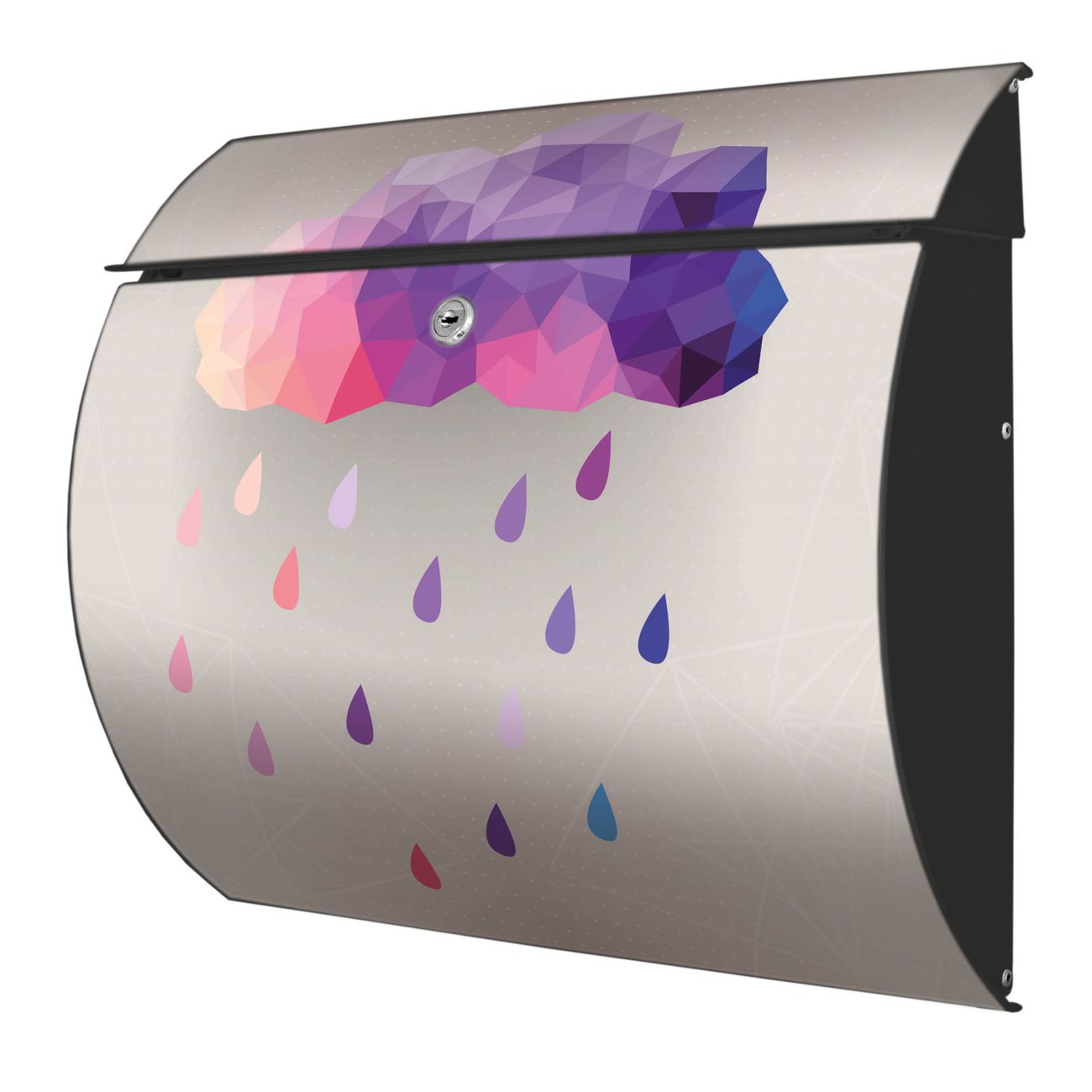 Der geschwungene Burg Wächter Briefkasten Toscana mit Motiv Regenwolke bietet Ihnen mit seinem großen Fassungsvermögen genügend Platz auch für große A4 Sendungen. Auf Wunsch können Sie bei uns den passenden Standfuß bestellen und so aus dem Wandbriefkasten einen Standbriefkasten machen. Der integrierte Öffnungsstopp ermöglicht eine einfache Handhabung beim Entnehmen der Post.