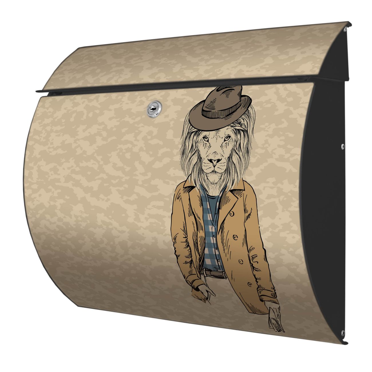FUNKTION: DESIGN: Das Burg Wächter Modell Toscana mit Motiv Retro Style hat ein sehr ansprechendes und zeitloses Design und ist besonderes wetterfest. Heben Sie Sich von der tristen grauen Masse ab, ohne auf Funktionalität zu verzichten. Wir bieten Ihnen ebenfalls Namensschilder, bereits beschriftet oder frei zu beschriften, und verschiedene selbst gestaltete Bitte-Keine-Werbung-Aufkleber. DETAILS: Der Postkasten besteht aus vollflächig verzinktem Stahl welcher in Anthrazit oder Weiß lackiert wurde oder aus Edelstahl (je nach gewählter Variante). Das Motiv besteht aus einer wetter- und UV-festen Folie, die mit einem Schutzlaminat überzogen ist, durch die Ihren Briefkasten zusätzlich vor Kratzern geschützt ist und auf den Briefkasten kaschiert wurde. Sie erhalten zu Ihrem neuen Design Briefkasten 2 Schlüssel sowie das passende Montagematerial. BANJADO: Ihr Briefkasten wird von Burg Wächter in Deutschland gefertigt und in unserer kleinen Manufaktur von Hand veredelt. Die Motivfolie ist lösungsmittelfrei und schutzlaminiert, dies sorgt für einen langen Halt. Wir legen großen Wert auf die Verbindung von Funktionalität und Design. Sie erhalten besondere Handarbeit aus Sachsen und Made in Germany.