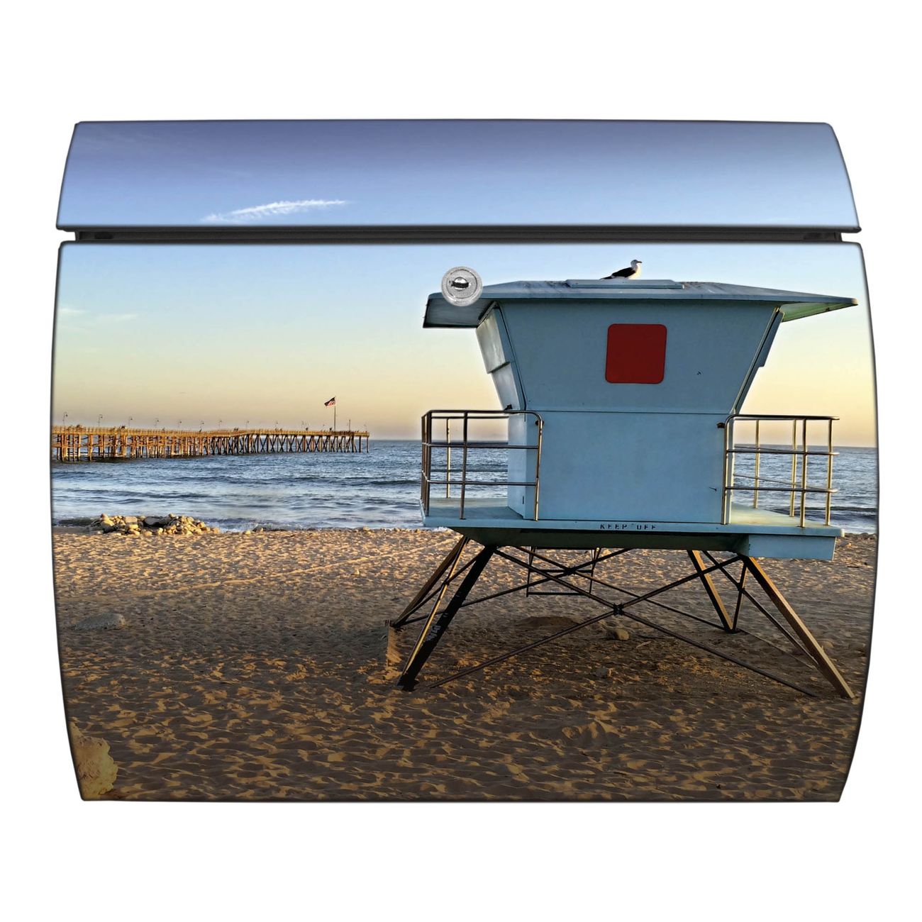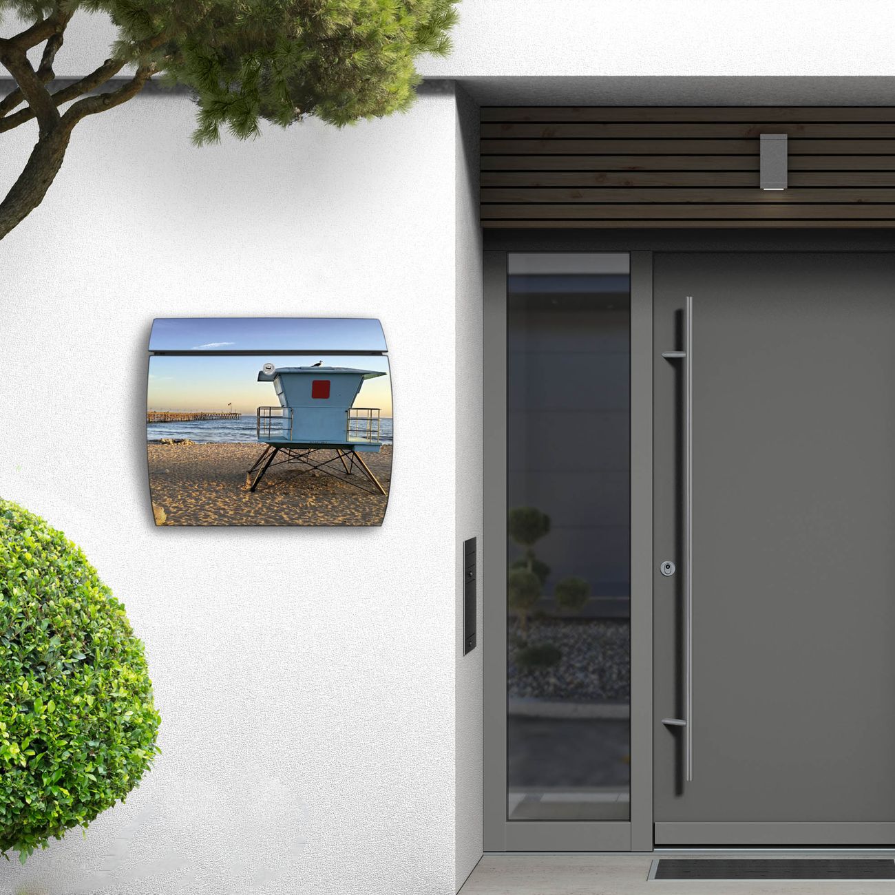 FUNKTION: DESIGN: Das Burg Wächter Modell Toscana mit Motiv Rettungsturm hat ein sehr ansprechendes und zeitloses Design und ist besonderes wetterfest. Heben Sie Sich von der tristen grauen Masse ab, ohne auf Funktionalität zu verzichten. Wir bieten Ihnen ebenfalls Namensschilder, bereits beschriftet oder frei zu beschriften, und verschiedene selbst gestaltete Bitte-Keine-Werbung-Aufkleber. DETAILS: Der Postkasten besteht aus vollflächig verzinktem Stahl welcher in Anthrazit oder Weiß lackiert wurde oder aus Edelstahl (je nach gewählter Variante). Das Motiv besteht aus einer wetter- und UV-festen Folie, die mit einem Schutzlaminat überzogen ist, durch die Ihren Briefkasten zusätzlich vor Kratzern geschützt ist und auf den Briefkasten kaschiert wurde. Sie erhalten zu Ihrem neuen Design Briefkasten 2 Schlüssel sowie das passende Montagematerial. BANJADO: Ihr Briefkasten wird von Burg Wächter in Deutschland gefertigt und in unserer kleinen Manufaktur von Hand veredelt. Die Motivfolie ist lösungsmittelfrei und schutzlaminiert, dies sorgt für einen langen Halt. Wir legen großen Wert auf die Verbindung von Funktionalität und Design. Sie erhalten besondere Handarbeit aus Sachsen und Made in Germany.