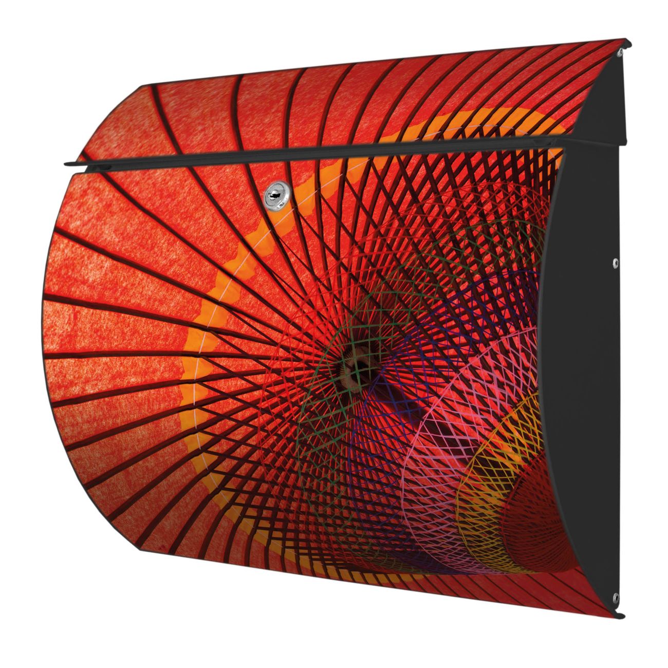 Der geschwungene Burg Wächter Briefkasten Toscana mit Motiv Roter Schirm bietet Ihnen mit seinem großen Fassungsvermögen genügend Platz auch für große A4 Sendungen. Auf Wunsch können Sie bei uns den passenden Standfuß bestellen und so aus dem Wandbriefkasten einen Standbriefkasten machen. Der integrierte Öffnungsstopp ermöglicht eine einfache Handhabung beim Entnehmen der Post.