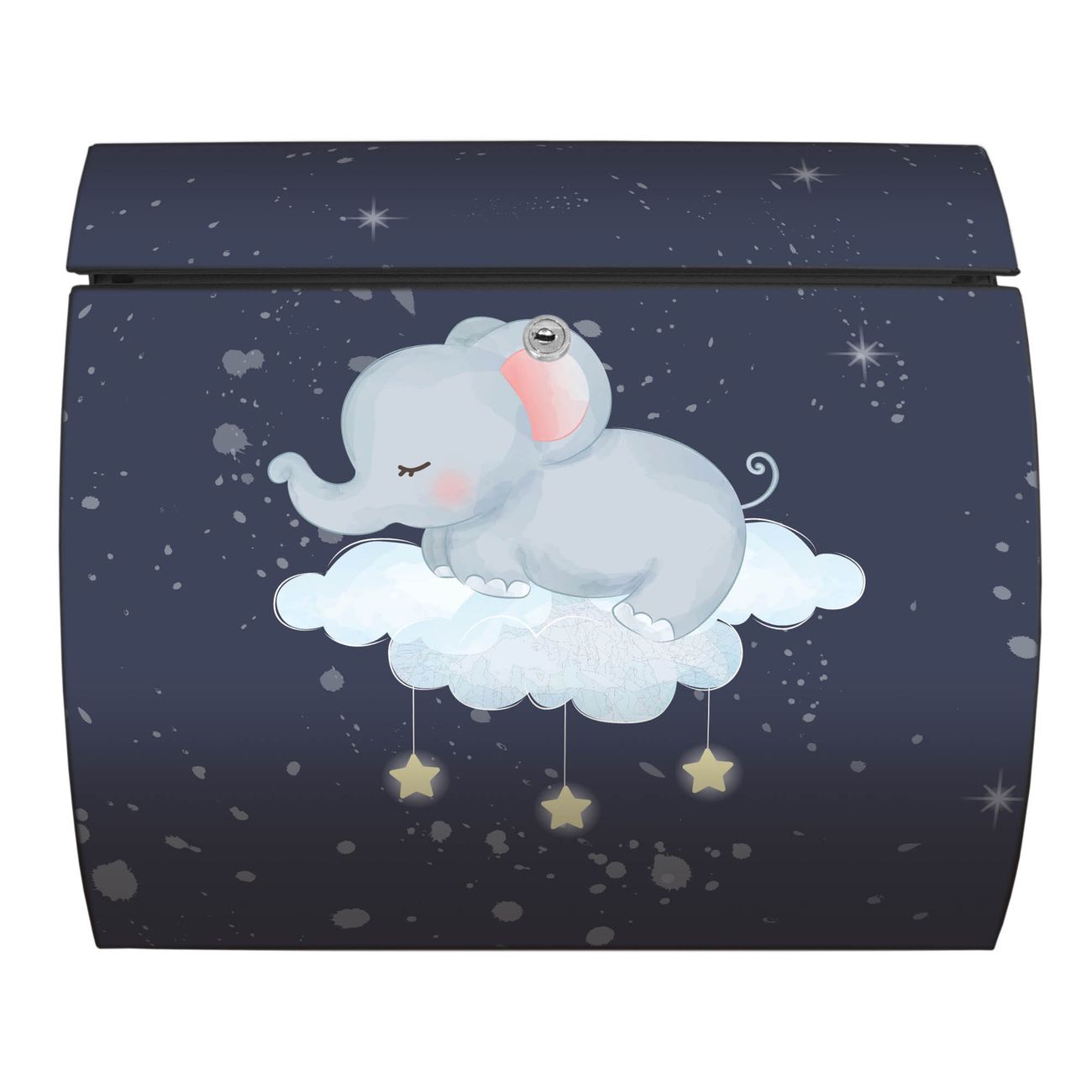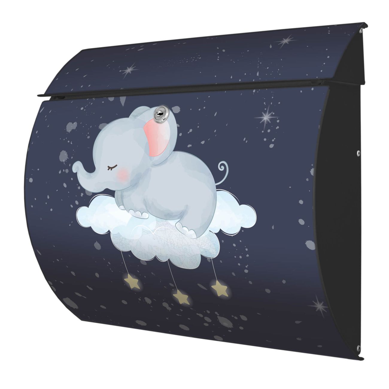 Der geschwungene Burg Wächter Briefkasten Toscana mit Motiv schlafender Elefant bietet Ihnen mit seinem großen Fassungsvermögen genügend Platz auch für große A4 Sendungen. Auf Wunsch können Sie bei uns den passenden Standfuß bestellen und so aus dem Wandbriefkasten einen Standbriefkasten machen. Der integrierte Öffnungsstopp ermöglicht eine einfache Handhabung beim Entnehmen der Post.