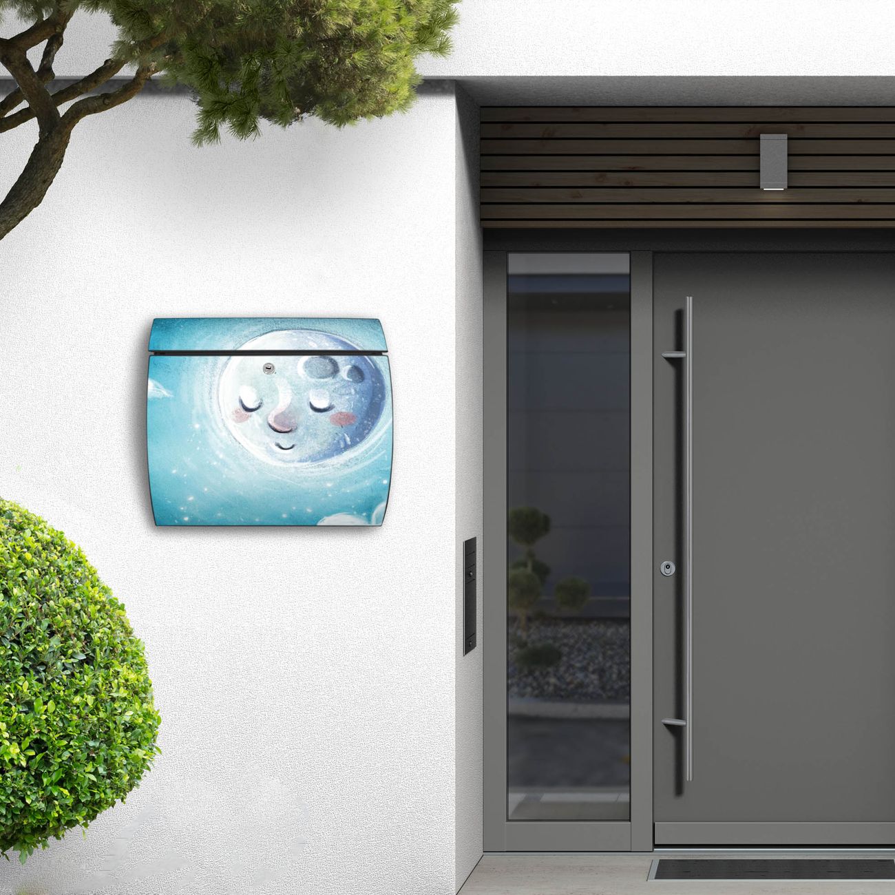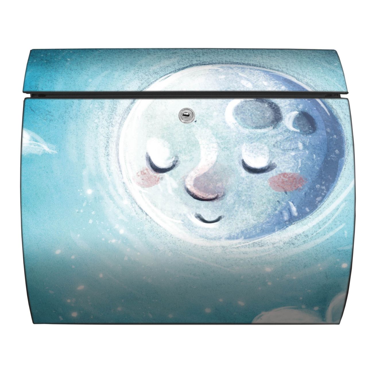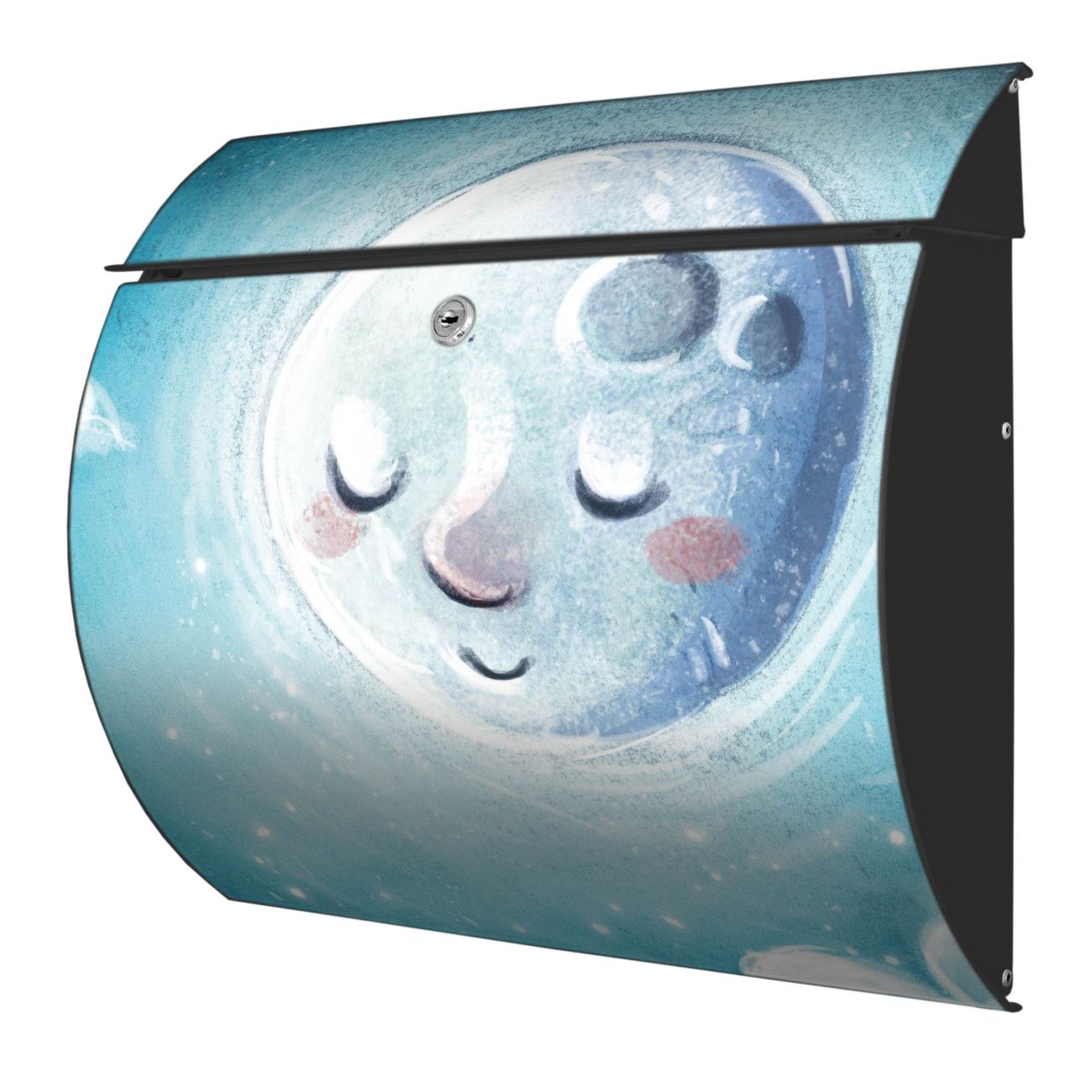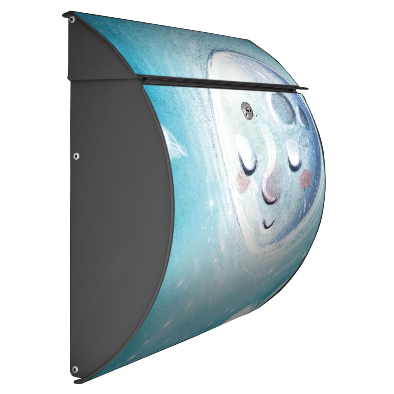 FUNKTION: DESIGN: Das Burg Wächter Modell Toscana mit Motiv schlafender Mond hat ein sehr ansprechendes und zeitloses Design und ist besonderes wetterfest. Heben Sie Sich von der tristen grauen Masse ab, ohne auf Funktionalität zu verzichten. Wir bieten Ihnen ebenfalls Namensschilder, bereits beschriftet oder frei zu beschriften, und verschiedene selbst gestaltete Bitte-Keine-Werbung-Aufkleber. DETAILS: Der Postkasten besteht aus vollflächig verzinktem Stahl welcher in Anthrazit oder Weiß lackiert wurde oder aus Edelstahl (je nach gewählter Variante). Das Motiv besteht aus einer wetter- und UV-festen Folie, die mit einem Schutzlaminat überzogen ist, durch die Ihren Briefkasten zusätzlich vor Kratzern geschützt ist und auf den Briefkasten kaschiert wurde. Sie erhalten zu Ihrem neuen Design Briefkasten 2 Schlüssel sowie das passende Montagematerial. BANJADO: Ihr Briefkasten wird von Burg Wächter in Deutschland gefertigt und in unserer kleinen Manufaktur von Hand veredelt. Die Motivfolie ist lösungsmittelfrei und schutzlaminiert, dies sorgt für einen langen Halt. Wir legen großen Wert auf die Verbindung von Funktionalität und Design. Sie erhalten besondere Handarbeit aus Sachsen und Made in Germany.