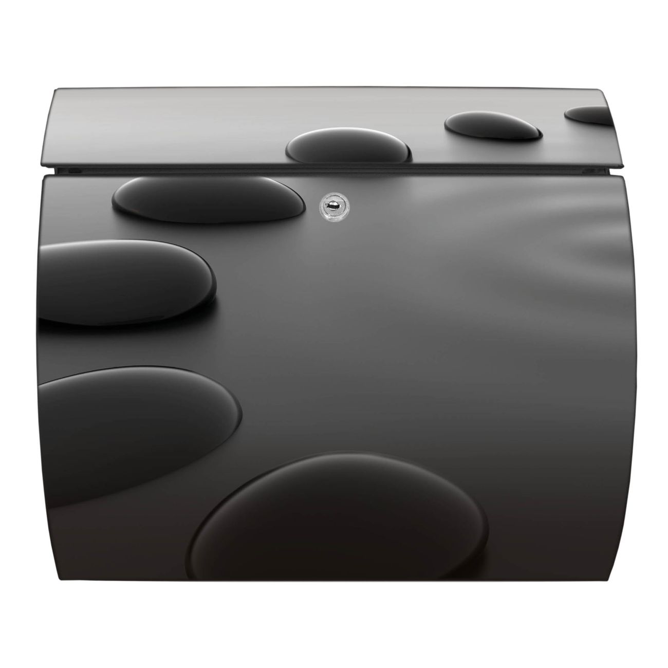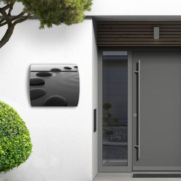 FUNKTION: DESIGN: Das Burg Wächter Modell Toscana mit Motiv Schwarze Steine hat ein sehr ansprechendes und zeitloses Design und ist besonderes wetterfest. Heben Sie Sich von der tristen grauen Masse ab, ohne auf Funktionalität zu verzichten. Wir bieten Ihnen ebenfalls Namensschilder, bereits beschriftet oder frei zu beschriften, und verschiedene selbst gestaltete Bitte-Keine-Werbung-Aufkleber. DETAILS: Der Postkasten besteht aus vollflächig verzinktem Stahl welcher in Anthrazit oder Weiß lackiert wurde oder aus Edelstahl (je nach gewählter Variante). Das Motiv besteht aus einer wetter- und UV-festen Folie, die mit einem Schutzlaminat überzogen ist, durch die Ihren Briefkasten zusätzlich vor Kratzern geschützt ist und auf den Briefkasten kaschiert wurde. Sie erhalten zu Ihrem neuen Design Briefkasten 2 Schlüssel sowie das passende Montagematerial. BANJADO: Ihr Briefkasten wird von Burg Wächter in Deutschland gefertigt und in unserer kleinen Manufaktur von Hand veredelt. Die Motivfolie ist lösungsmittelfrei und schutzlaminiert, dies sorgt für einen langen Halt. Wir legen großen Wert auf die Verbindung von Funktionalität und Design. Sie erhalten besondere Handarbeit aus Sachsen und Made in Germany.