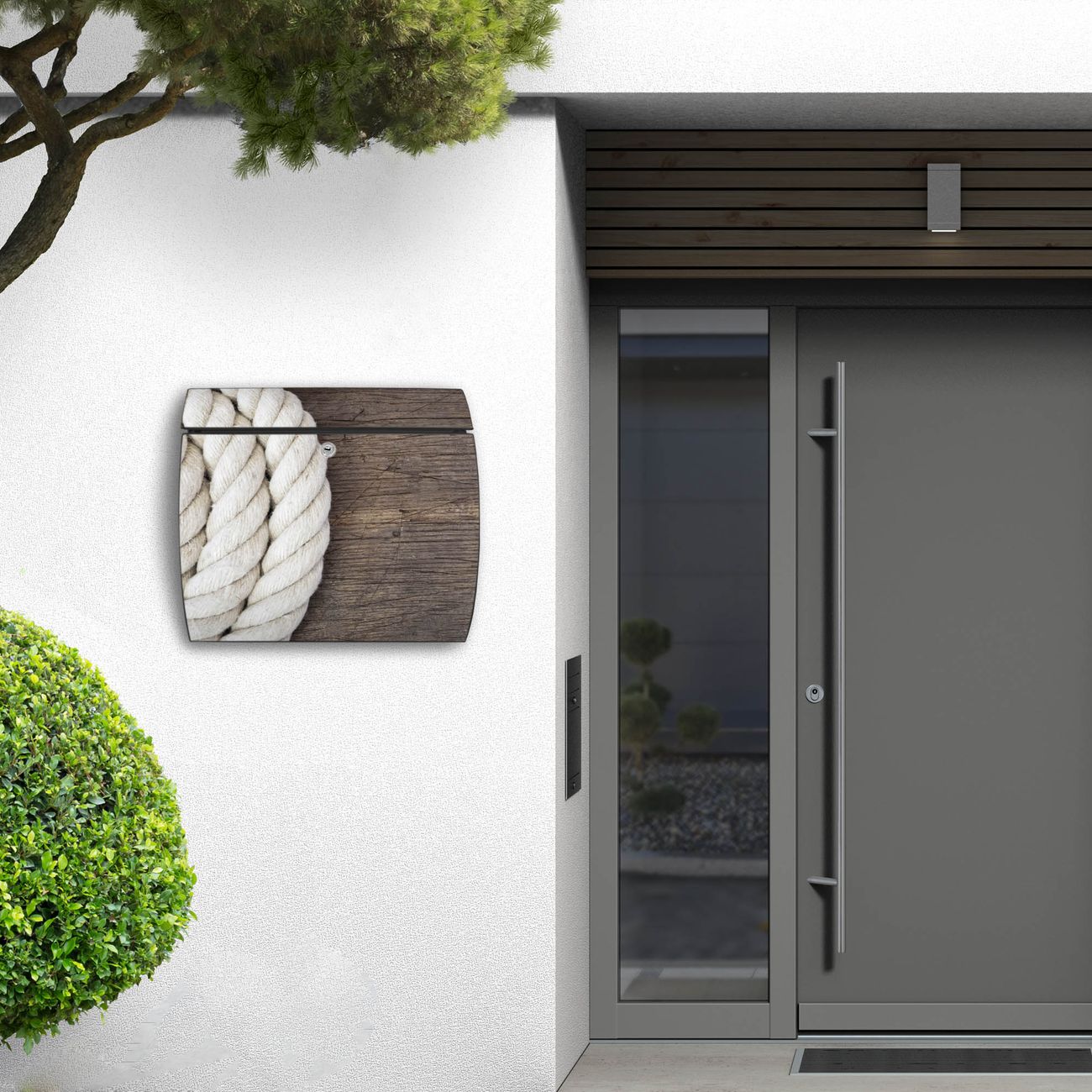 FUNKTION: DESIGN: Das Burg Wächter Modell Toscana mit Motiv Seil hat ein sehr ansprechendes und zeitloses Design und ist besonderes wetterfest. Heben Sie Sich von der tristen grauen Masse ab, ohne auf Funktionalität zu verzichten. Wir bieten Ihnen ebenfalls Namensschilder, bereits beschriftet oder frei zu beschriften, und verschiedene selbst gestaltete Bitte-Keine-Werbung-Aufkleber. DETAILS: Der Postkasten besteht aus vollflächig verzinktem Stahl welcher in Anthrazit oder Weiß lackiert wurde oder aus Edelstahl (je nach gewählter Variante). Das Motiv besteht aus einer wetter- und UV-festen Folie, die mit einem Schutzlaminat überzogen ist, durch die Ihren Briefkasten zusätzlich vor Kratzern geschützt ist und auf den Briefkasten kaschiert wurde. Sie erhalten zu Ihrem neuen Design Briefkasten 2 Schlüssel sowie das passende Montagematerial. BANJADO: Ihr Briefkasten wird von Burg Wächter in Deutschland gefertigt und in unserer kleinen Manufaktur von Hand veredelt. Die Motivfolie ist lösungsmittelfrei und schutzlaminiert, dies sorgt für einen langen Halt. Wir legen großen Wert auf die Verbindung von Funktionalität und Design. Sie erhalten besondere Handarbeit aus Sachsen und Made in Germany.