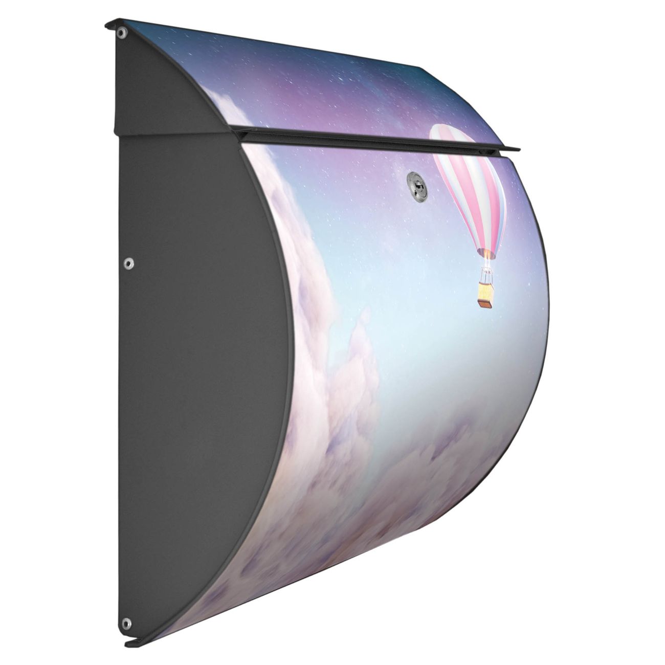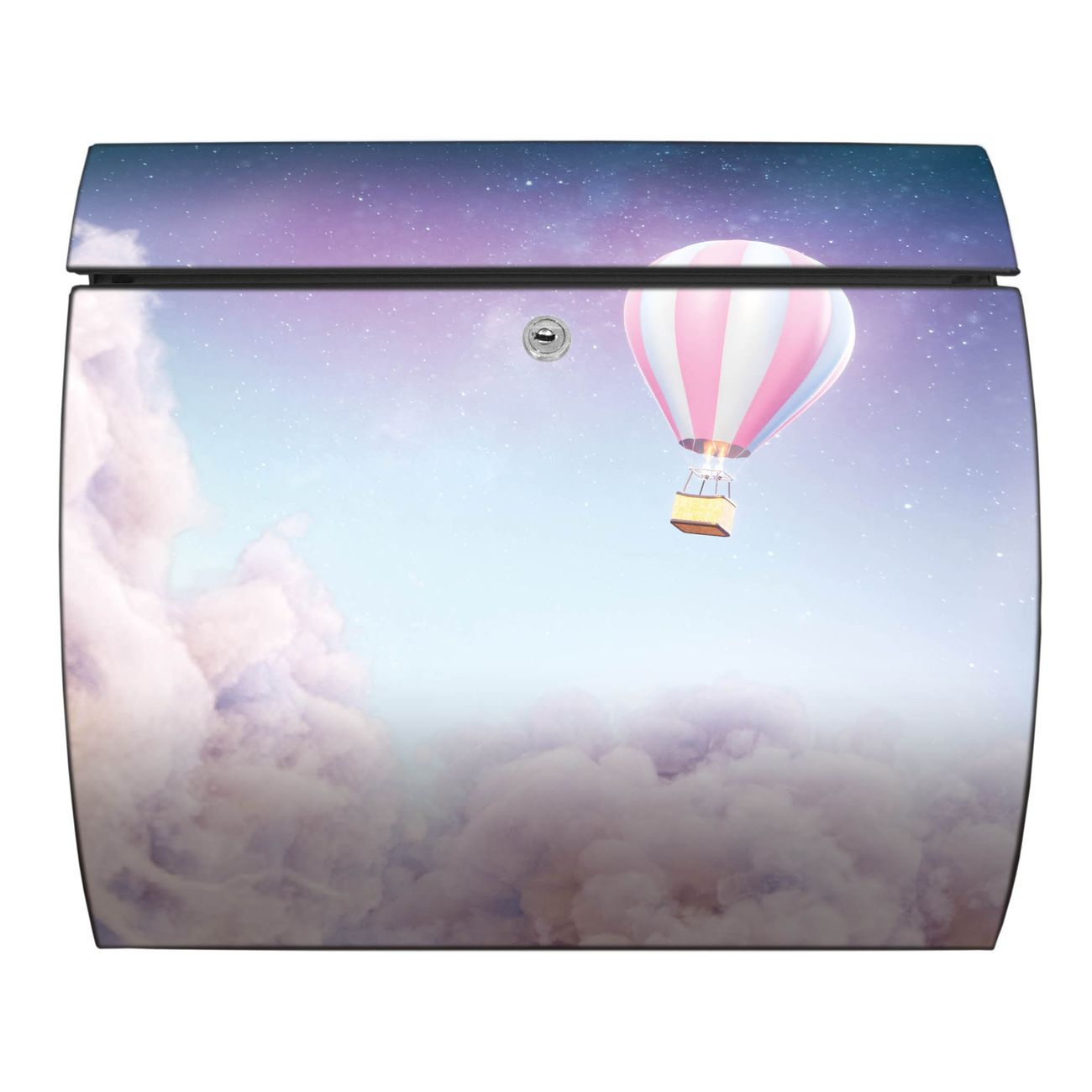 Der geschwungene Burg Wächter Briefkasten Toscana mit Motiv Über den Wolken bietet Ihnen mit seinem großen Fassungsvermögen genügend Platz auch für große A4 Sendungen. Auf Wunsch können Sie bei uns den passenden Standfuß bestellen und so aus dem Wandbriefkasten einen Standbriefkasten machen. Der integrierte Öffnungsstopp ermöglicht eine einfache Handhabung beim Entnehmen der Post.