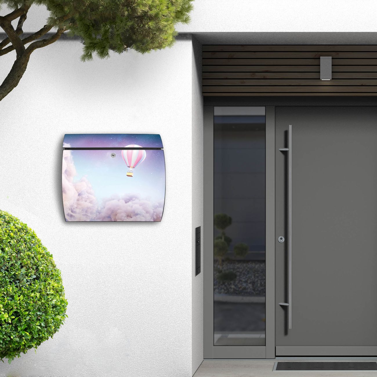 FUNKTION: DESIGN: Das Burg Wächter Modell Toscana mit Motiv Über den Wolken hat ein sehr ansprechendes und zeitloses Design und ist besonderes wetterfest. Heben Sie Sich von der tristen grauen Masse ab, ohne auf Funktionalität zu verzichten. Wir bieten Ihnen ebenfalls Namensschilder, bereits beschriftet oder frei zu beschriften, und verschiedene selbst gestaltete Bitte-Keine-Werbung-Aufkleber. DETAILS: Der Postkasten besteht aus vollflächig verzinktem Stahl welcher in Anthrazit oder Weiß lackiert wurde oder aus Edelstahl (je nach gewählter Variante). Das Motiv besteht aus einer wetter- und UV-festen Folie, die mit einem Schutzlaminat überzogen ist, durch die Ihren Briefkasten zusätzlich vor Kratzern geschützt ist und auf den Briefkasten kaschiert wurde. Sie erhalten zu Ihrem neuen Design Briefkasten 2 Schlüssel sowie das passende Montagematerial. BANJADO: Ihr Briefkasten wird von Burg Wächter in Deutschland gefertigt und in unserer kleinen Manufaktur von Hand veredelt. Die Motivfolie ist lösungsmittelfrei und schutzlaminiert, dies sorgt für einen langen Halt. Wir legen großen Wert auf die Verbindung von Funktionalität und Design. Sie erhalten besondere Handarbeit aus Sachsen und Made in Germany.