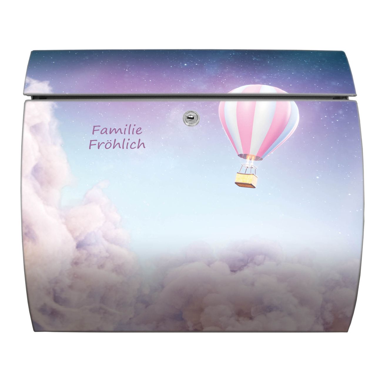 Der geschwungene Burg Wächter Briefkasten Toscana mit Motiv Über den Wolken bietet Ihnen mit seinem großen Fassungsvermögen genügend Platz auch für große A4 Sendungen. Auf Wunsch können Sie bei uns den passenden Standfuß bestellen und so aus dem Wandbriefkasten einen Standbriefkasten machen. Der integrierte Öffnungsstopp ermöglicht eine einfache Handhabung beim Entnehmen der Post.
