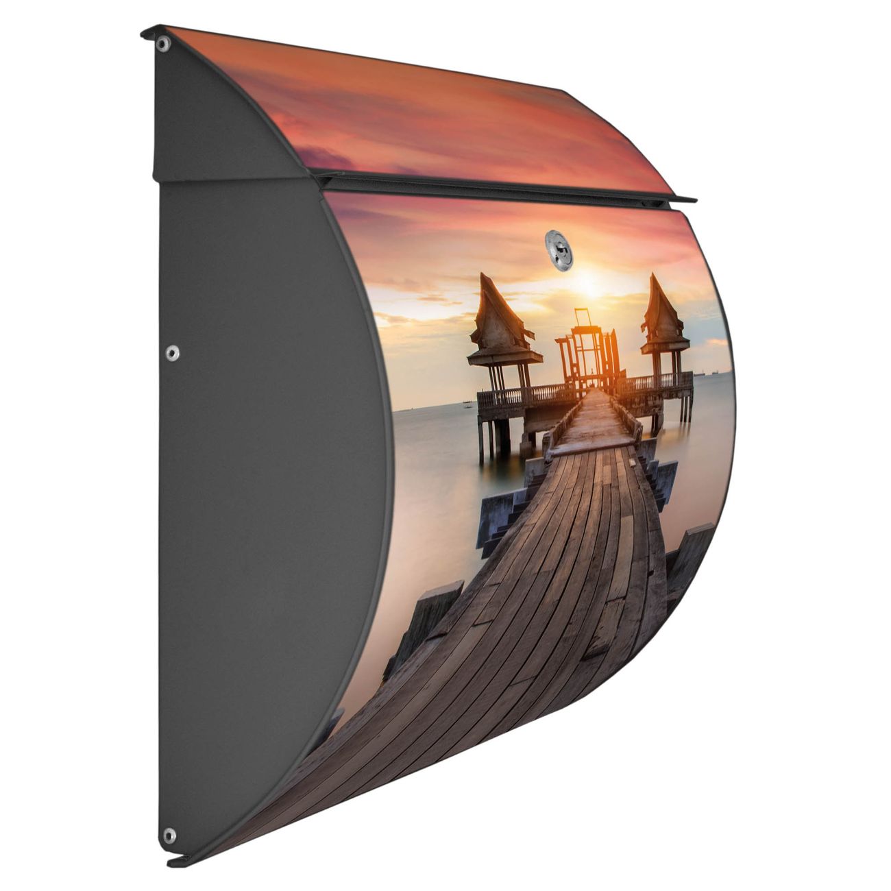 FUNKTION: DESIGN: Das Burg Wächter Modell Toscana mit Motiv Überm Nebelmeer hat ein sehr ansprechendes und zeitloses Design und ist besonderes wetterfest. Heben Sie Sich von der tristen grauen Masse ab, ohne auf Funktionalität zu verzichten. Wir bieten Ihnen ebenfalls Namensschilder, bereits beschriftet oder frei zu beschriften, und verschiedene selbst gestaltete Bitte-Keine-Werbung-Aufkleber. DETAILS: Der Postkasten besteht aus vollflächig verzinktem Stahl welcher in Anthrazit oder Weiß lackiert wurde oder aus Edelstahl (je nach gewählter Variante). Das Motiv besteht aus einer wetter- und UV-festen Folie, die mit einem Schutzlaminat überzogen ist, durch die Ihren Briefkasten zusätzlich vor Kratzern geschützt ist und auf den Briefkasten kaschiert wurde. Sie erhalten zu Ihrem neuen Design Briefkasten 2 Schlüssel sowie das passende Montagematerial. BANJADO: Ihr Briefkasten wird von Burg Wächter in Deutschland gefertigt und in unserer kleinen Manufaktur von Hand veredelt. Die Motivfolie ist lösungsmittelfrei und schutzlaminiert, dies sorgt für einen langen Halt. Wir legen großen Wert auf die Verbindung von Funktionalität und Design. Sie erhalten besondere Handarbeit aus Sachsen und Made in Germany.