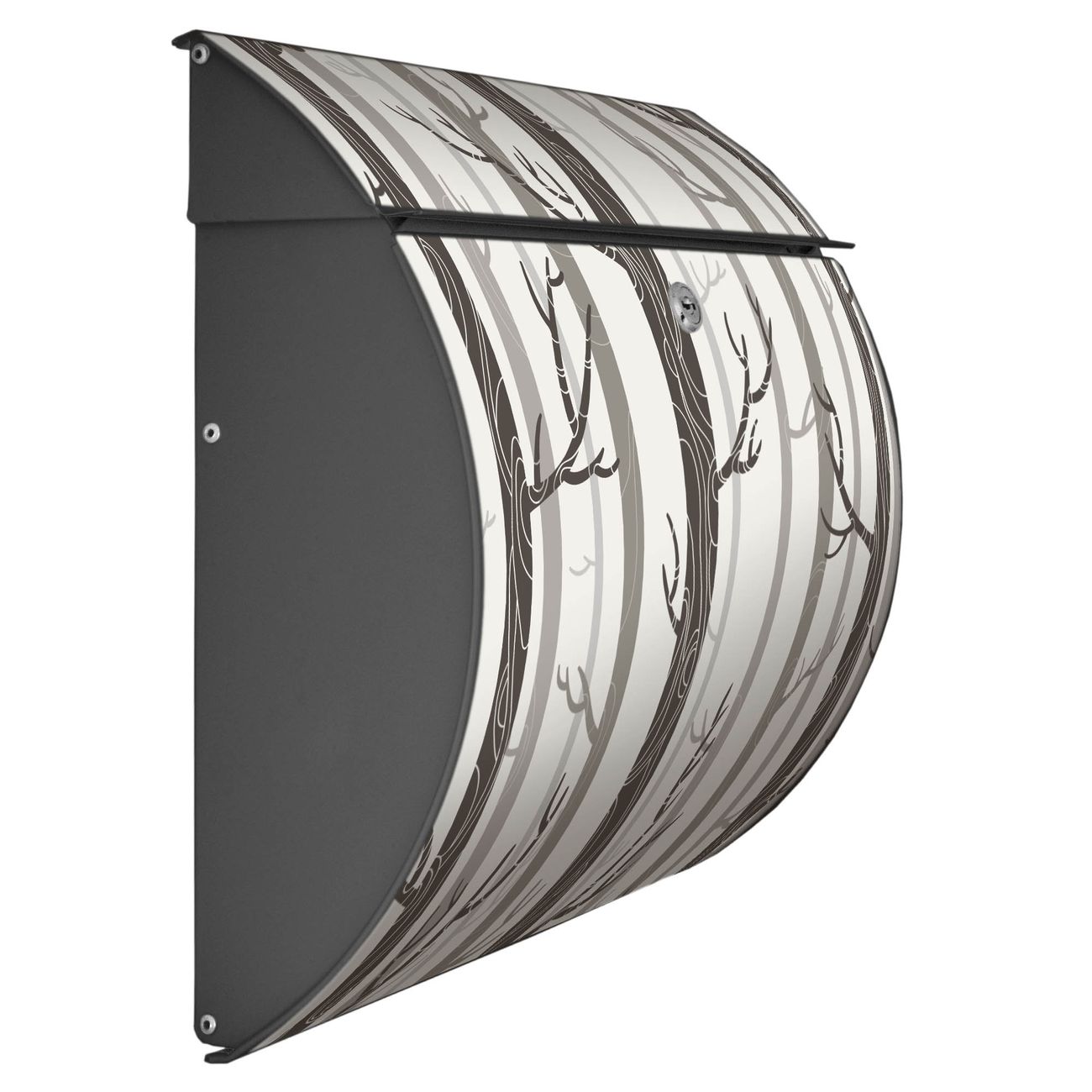 Der geschwungene Burg Wächter Briefkasten Toscana mit Motiv Wald bietet Ihnen mit seinem großen Fassungsvermögen genügend Platz auch für große A4 Sendungen. Auf Wunsch können Sie bei uns den passenden Standfuß bestellen und so aus dem Wandbriefkasten einen Standbriefkasten machen. Der integrierte Öffnungsstopp ermöglicht eine einfache Handhabung beim Entnehmen der Post.