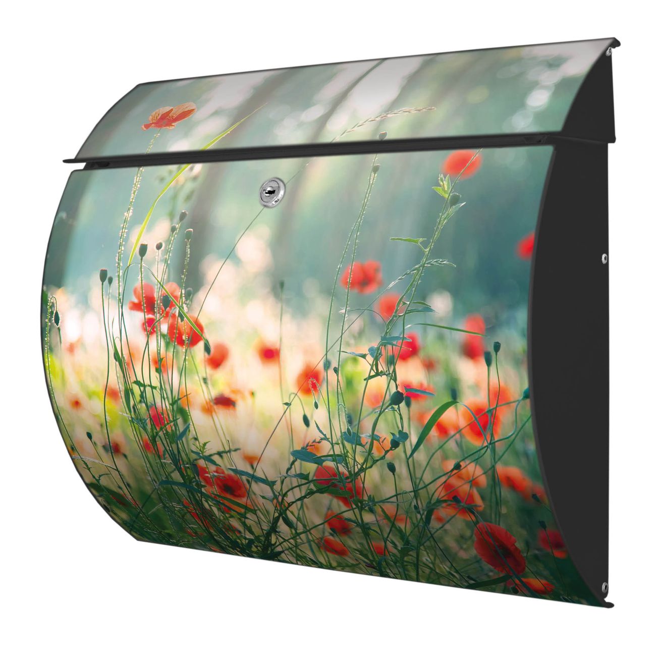 Der geschwungene Burg Wächter Briefkasten Toscana mit Motiv Waldmohn bietet Ihnen mit seinem großen Fassungsvermögen genügend Platz auch für große A4 Sendungen. Auf Wunsch können Sie bei uns den passenden Standfuß bestellen und so aus dem Wandbriefkasten einen Standbriefkasten machen. Der integrierte Öffnungsstopp ermöglicht eine einfache Handhabung beim Entnehmen der Post.
