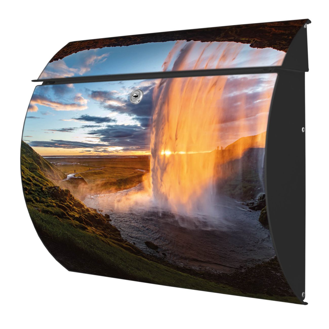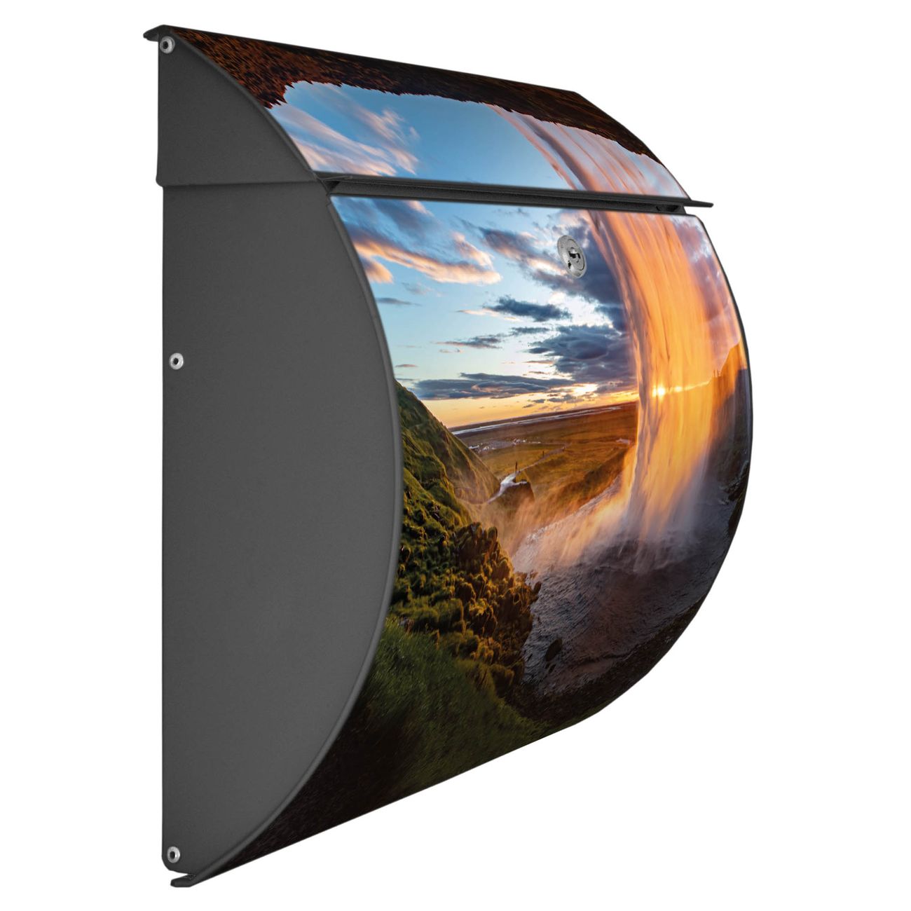 Der geschwungene Burg Wächter Briefkasten Toscana mit Motiv Wasserfall im Sonnenlicht bietet Ihnen mit seinem großen Fassungsvermögen genügend Platz auch für große A4 Sendungen. Auf Wunsch können Sie bei uns den passenden Standfuß bestellen und so aus dem Wandbriefkasten einen Standbriefkasten machen. Der integrierte Öffnungsstopp ermöglicht eine einfache Handhabung beim Entnehmen der Post.
