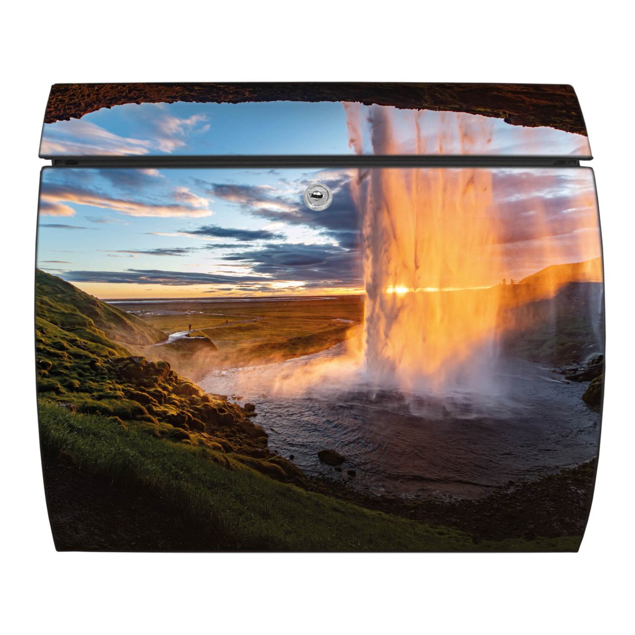 FUNKTION: DESIGN: Das Burg Wächter Modell Toscana mit Motiv Wasserfall im Sonnenlicht hat ein sehr ansprechendes und zeitloses Design und ist besonderes wetterfest. Heben Sie Sich von der tristen grauen Masse ab, ohne auf Funktionalität zu verzichten. Wir bieten Ihnen ebenfalls Namensschilder, bereits beschriftet oder frei zu beschriften, und verschiedene selbst gestaltete Bitte-Keine-Werbung-Aufkleber. DETAILS: Der Postkasten besteht aus vollflächig verzinktem Stahl welcher in Anthrazit oder Weiß lackiert wurde oder aus Edelstahl (je nach gewählter Variante). Das Motiv besteht aus einer wetter- und UV-festen Folie, die mit einem Schutzlaminat überzogen ist, durch die Ihren Briefkasten zusätzlich vor Kratzern geschützt ist und auf den Briefkasten kaschiert wurde. Sie erhalten zu Ihrem neuen Design Briefkasten 2 Schlüssel sowie das passende Montagematerial. BANJADO: Ihr Briefkasten wird von Burg Wächter in Deutschland gefertigt und in unserer kleinen Manufaktur von Hand veredelt. Die Motivfolie ist lösungsmittelfrei und schutzlaminiert, dies sorgt für einen langen Halt. Wir legen großen Wert auf die Verbindung von Funktionalität und Design. Sie erhalten besondere Handarbeit aus Sachsen und Made in Germany.