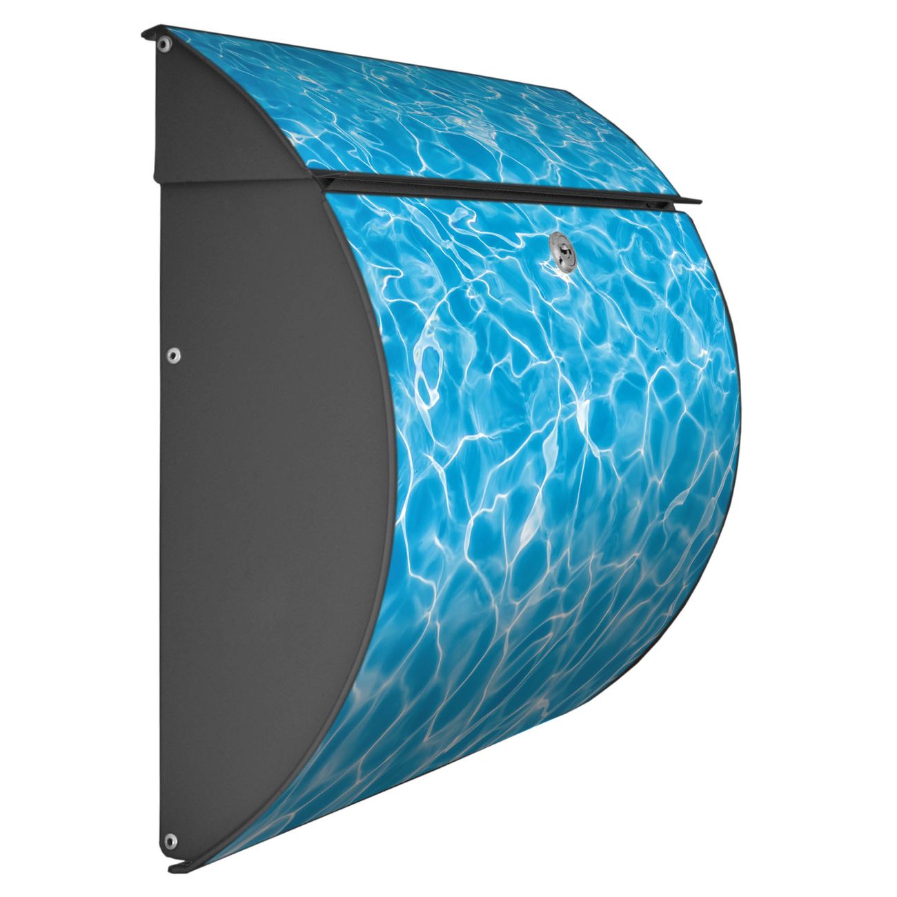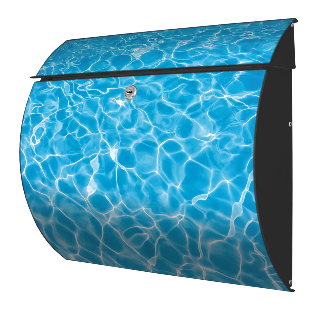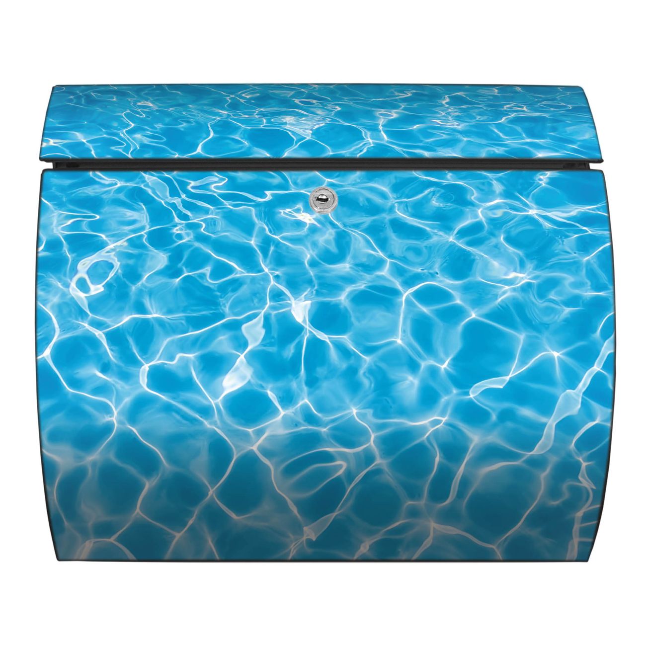 Der geschwungene Burg Wächter Briefkasten Toscana mit Motiv Wasseroberfläche bietet Ihnen mit seinem großen Fassungsvermögen genügend Platz auch für große A4 Sendungen. Auf Wunsch können Sie bei uns den passenden Standfuß bestellen und so aus dem Wandbriefkasten einen Standbriefkasten machen. Der integrierte Öffnungsstopp ermöglicht eine einfache Handhabung beim Entnehmen der Post.