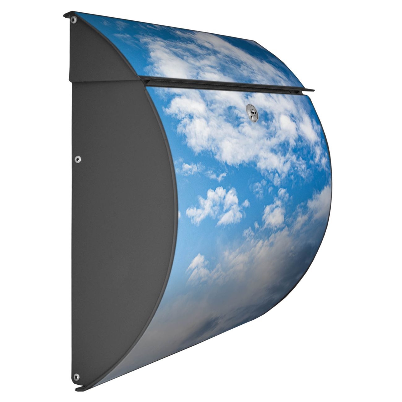 Der geschwungene Burg Wächter Briefkasten Toscana mit Motiv Wolken 1 bietet Ihnen mit seinem großen Fassungsvermögen genügend Platz auch für große A4 Sendungen. Auf Wunsch können Sie bei uns den passenden Standfuß bestellen und so aus dem Wandbriefkasten einen Standbriefkasten machen. Der integrierte Öffnungsstopp ermöglicht eine einfache Handhabung beim Entnehmen der Post.