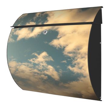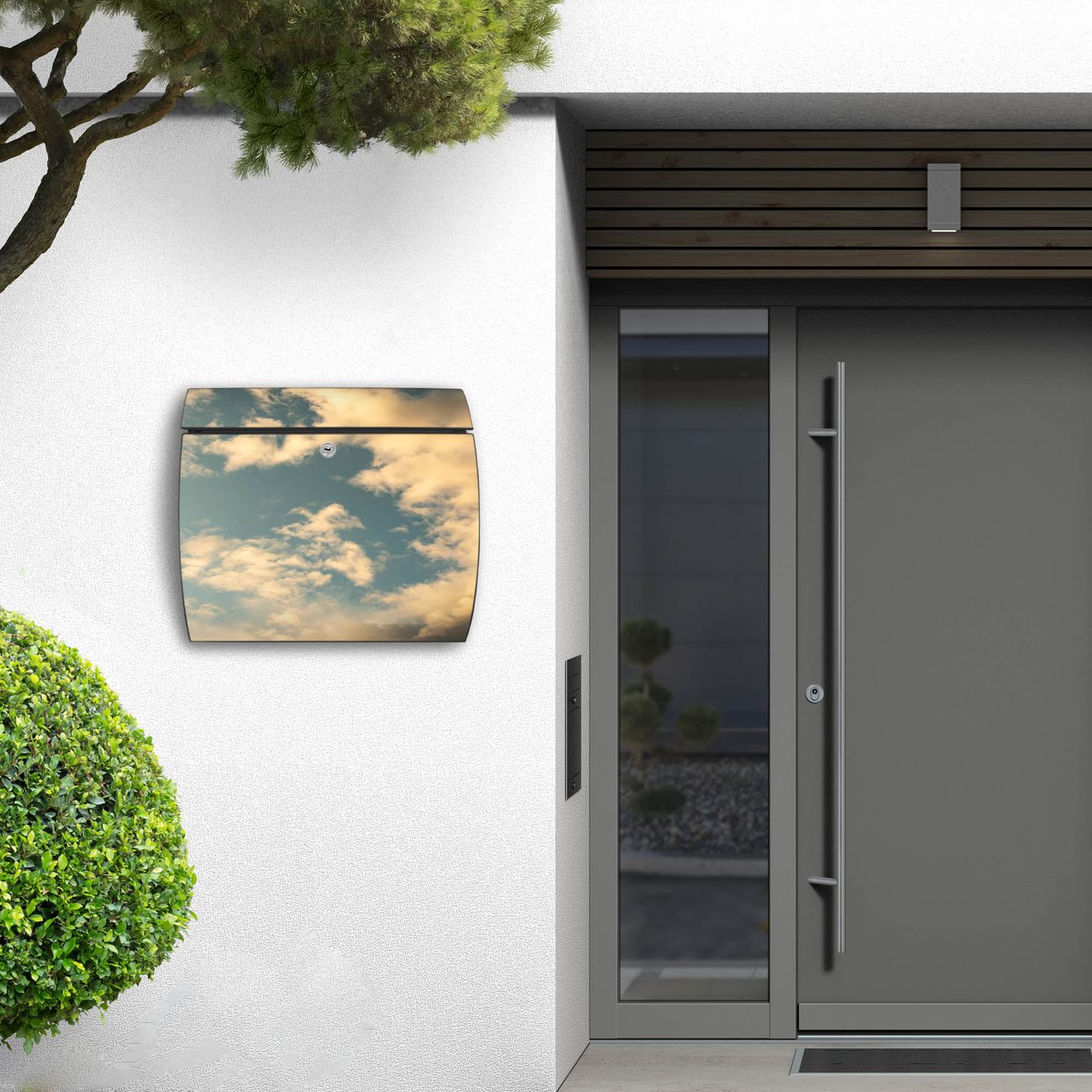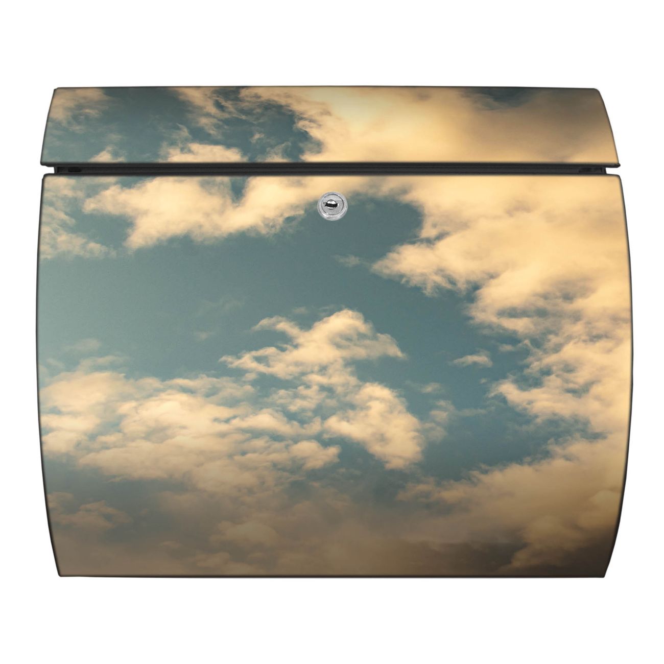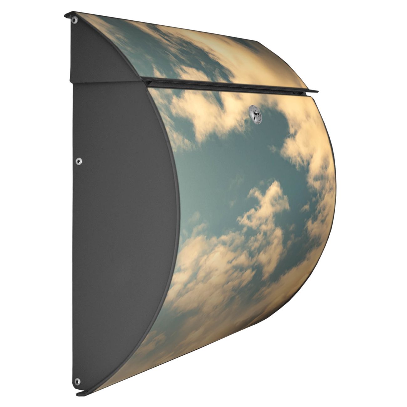 Der geschwungene Burg Wächter Briefkasten Toscana mit Motiv Wolken 6 bietet Ihnen mit seinem großen Fassungsvermögen genügend Platz auch für große A4 Sendungen. Auf Wunsch können Sie bei uns den passenden Standfuß bestellen und so aus dem Wandbriefkasten einen Standbriefkasten machen. Der integrierte Öffnungsstopp ermöglicht eine einfache Handhabung beim Entnehmen der Post.