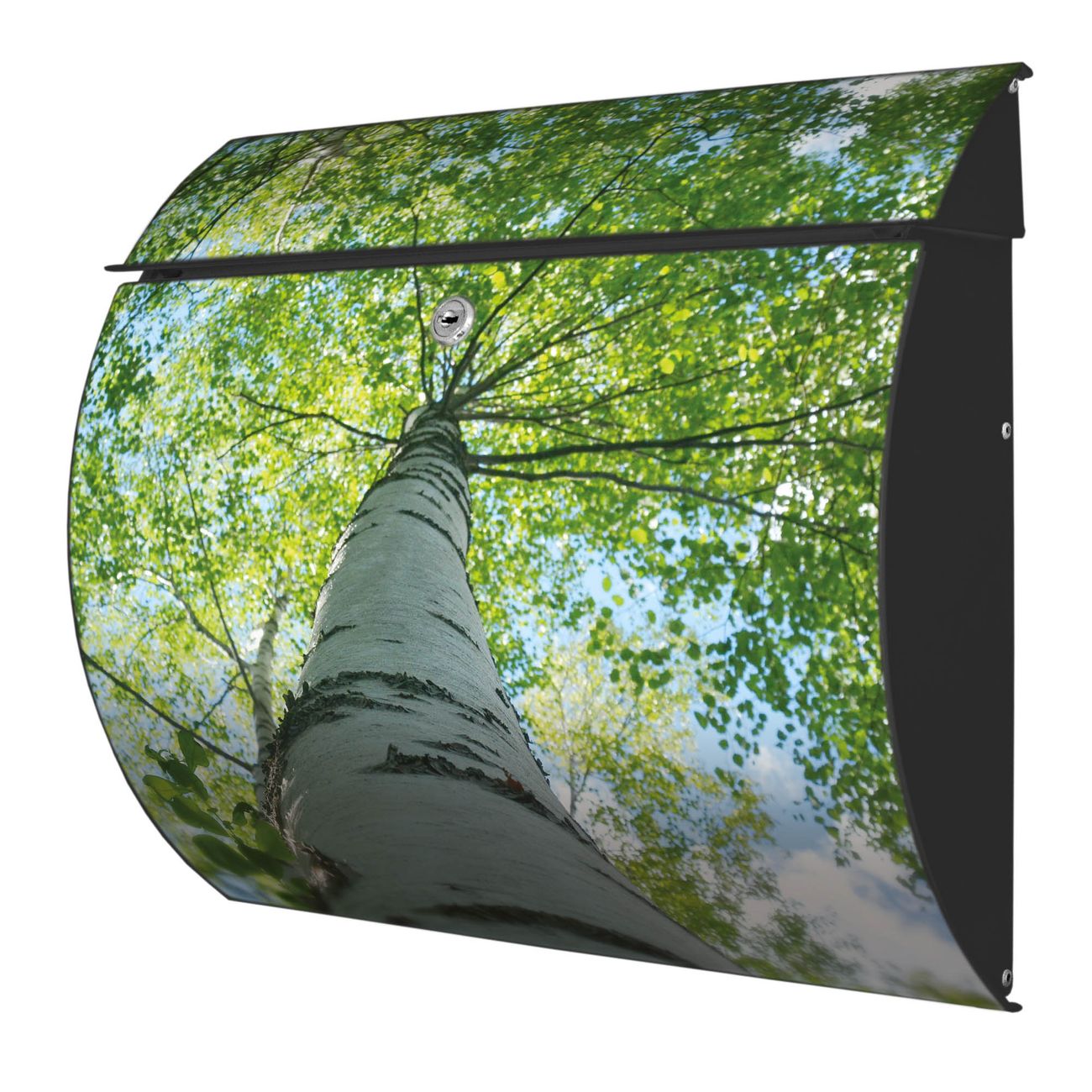 Der geschwungene Burg Wächter Briefkasten Toscana mit Motiv Zwischen Bäumen 5 bietet Ihnen mit seinem großen Fassungsvermögen genügend Platz auch für große A4 Sendungen. Auf Wunsch können Sie bei uns den passenden Standfuß bestellen und so aus dem Wandbriefkasten einen Standbriefkasten machen. Der integrierte Öffnungsstopp ermöglicht eine einfache Handhabung beim Entnehmen der Post.