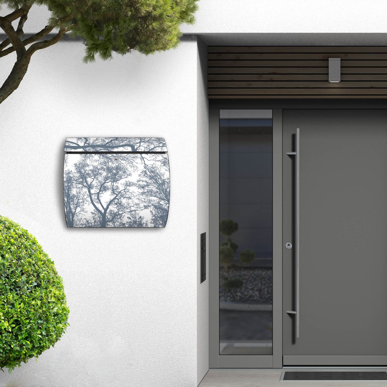 FUNKTION: DESIGN: Das Burg Wächter Modell Toscana mit Motiv Zwischen Bäumen 7 hat ein sehr ansprechendes und zeitloses Design und ist besonderes wetterfest. Heben Sie Sich von der tristen grauen Masse ab, ohne auf Funktionalität zu verzichten. Wir bieten Ihnen ebenfalls Namensschilder, bereits beschriftet oder frei zu beschriften, und verschiedene selbst gestaltete Bitte-Keine-Werbung-Aufkleber. DETAILS: Der Postkasten besteht aus vollflächig verzinktem Stahl welcher in Anthrazit oder Weiß lackiert wurde oder aus Edelstahl (je nach gewählter Variante). Das Motiv besteht aus einer wetter- und UV-festen Folie, die mit einem Schutzlaminat überzogen ist, durch die Ihren Briefkasten zusätzlich vor Kratzern geschützt ist und auf den Briefkasten kaschiert wurde. Sie erhalten zu Ihrem neuen Design Briefkasten 2 Schlüssel sowie das passende Montagematerial. BANJADO: Ihr Briefkasten wird von Burg Wächter in Deutschland gefertigt und in unserer kleinen Manufaktur von Hand veredelt. Die Motivfolie ist lösungsmittelfrei und schutzlaminiert, dies sorgt für einen langen Halt. Wir legen großen Wert auf die Verbindung von Funktionalität und Design. Sie erhalten besondere Handarbeit aus Sachsen und Made in Germany.