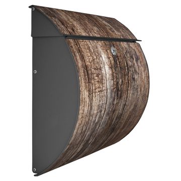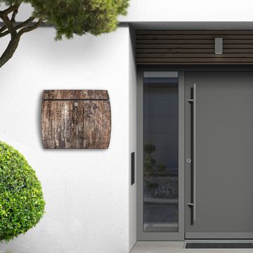 Der geschwungene Burg Wächter Briefkasten Toscana mit Motiv Altes Holz bietet Ihnen mit seinem großen Fassungsvermögen genügend Platz auch für große A4 Sendungen. Auf Wunsch können Sie bei uns den passenden Standfuß bestellen und so aus dem Wandbriefkasten einen Standbriefkasten machen. Der integrierte Öffnungsstopp ermöglicht eine einfache Handhabung beim Entnehmen der Post.