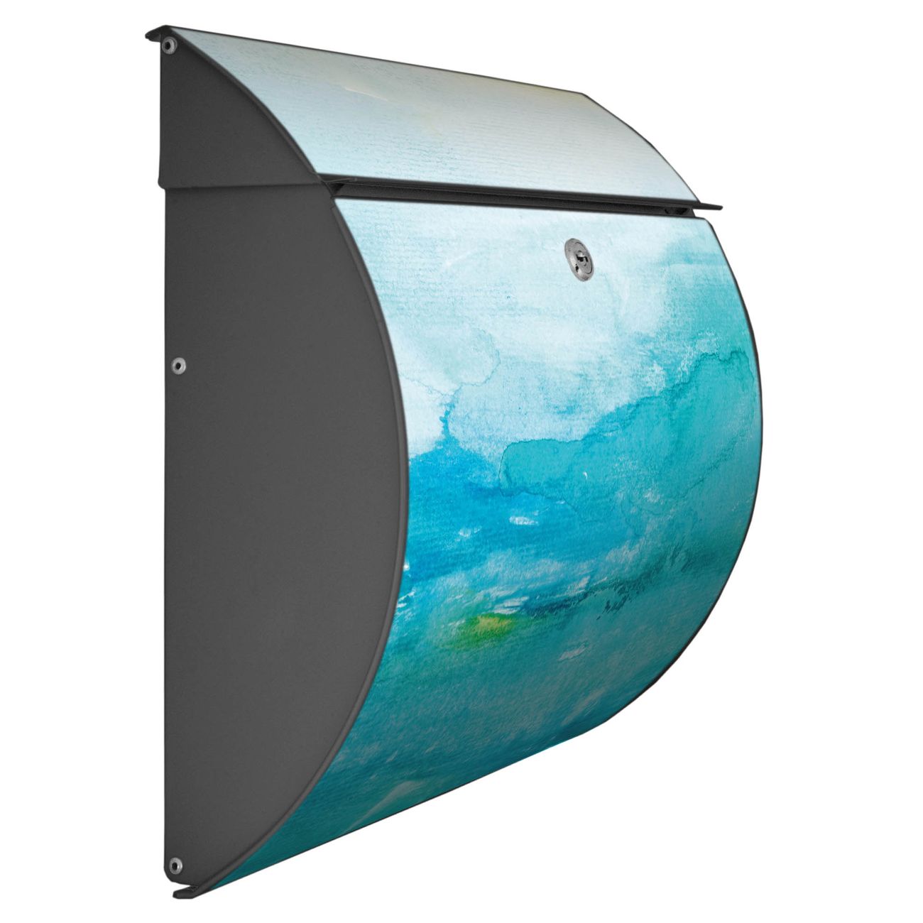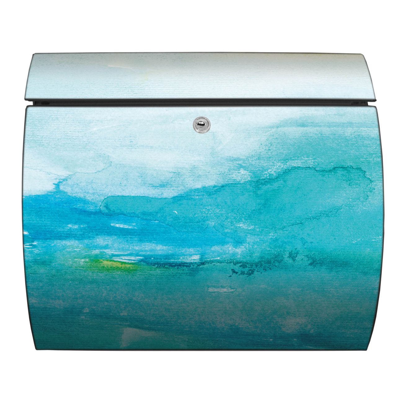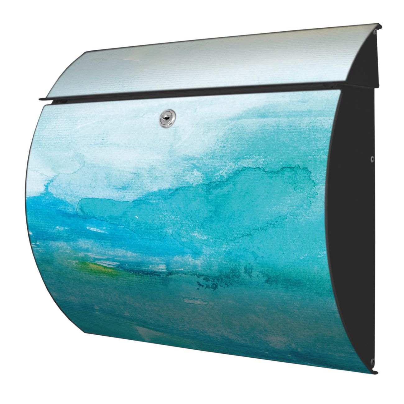 Der geschwungene Burg Wächter Briefkasten Toscana mit Motiv Aquarell Blau bietet Ihnen mit seinem großen Fassungsvermögen genügend Platz auch für große A4 Sendungen. Auf Wunsch können Sie bei uns den passenden Standfuß bestellen und so aus dem Wandbriefkasten einen Standbriefkasten machen. Der integrierte Öffnungsstopp ermöglicht eine einfache Handhabung beim Entnehmen der Post.