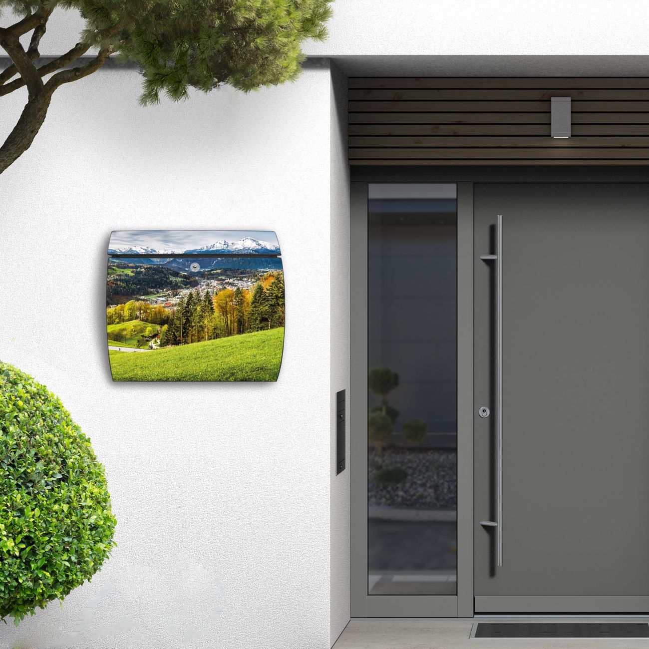 FUNKTION: DESIGN: Das Burg Wächter Modell Toscana mit Motiv Berchtesgadener Land hat ein sehr ansprechendes und zeitloses Design und ist besonderes wetterfest. Heben Sie Sich von der tristen grauen Masse ab, ohne auf Funktionalität zu verzichten. Wir bieten Ihnen ebenfalls Namensschilder, bereits beschriftet oder frei zu beschriften, und verschiedene selbst gestaltete Bitte-Keine-Werbung-Aufkleber. DETAILS: Der Postkasten besteht aus vollflächig verzinktem Stahl welcher in Anthrazit oder Weiß lackiert wurde oder aus Edelstahl (je nach gewählter Variante). Das Motiv besteht aus einer wetter- und UV-festen Folie, die mit einem Schutzlaminat überzogen ist, durch die Ihren Briefkasten zusätzlich vor Kratzern geschützt ist und auf den Briefkasten kaschiert wurde. Sie erhalten zu Ihrem neuen Design Briefkasten 2 Schlüssel sowie das passende Montagematerial. BANJADO: Ihr Briefkasten wird von Burg Wächter in Deutschland gefertigt und in unserer kleinen Manufaktur von Hand veredelt. Die Motivfolie ist lösungsmittelfrei und schutzlaminiert, dies sorgt für einen langen Halt. Wir legen großen Wert auf die Verbindung von Funktionalität und Design. Sie erhalten besondere Handarbeit aus Sachsen und Made in Germany.