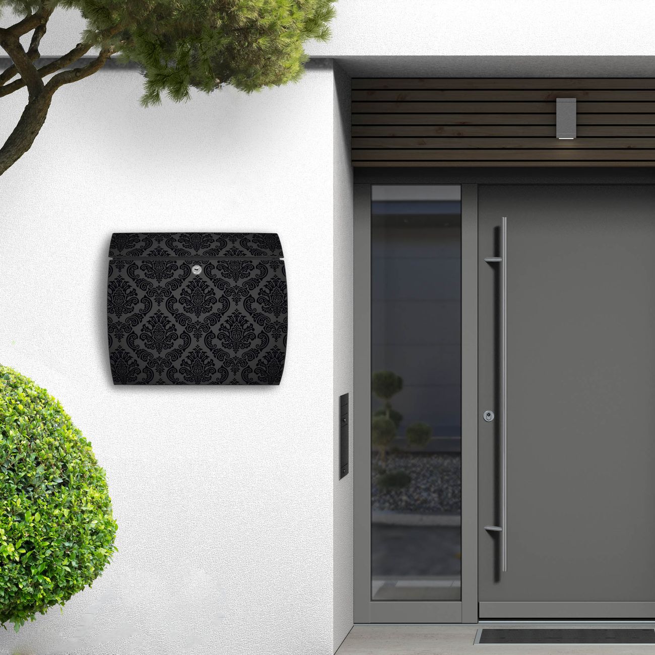 Der geschwungene Burg Wächter Briefkasten Toscana mit Motiv Black Deluxe bietet Ihnen mit seinem großen Fassungsvermögen genügend Platz auch für große A4 Sendungen. Auf Wunsch können Sie bei uns den passenden Standfuß bestellen und so aus dem Wandbriefkasten einen Standbriefkasten machen. Der integrierte Öffnungsstopp ermöglicht eine einfache Handhabung beim Entnehmen der Post.
