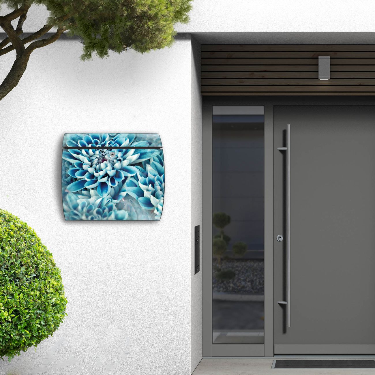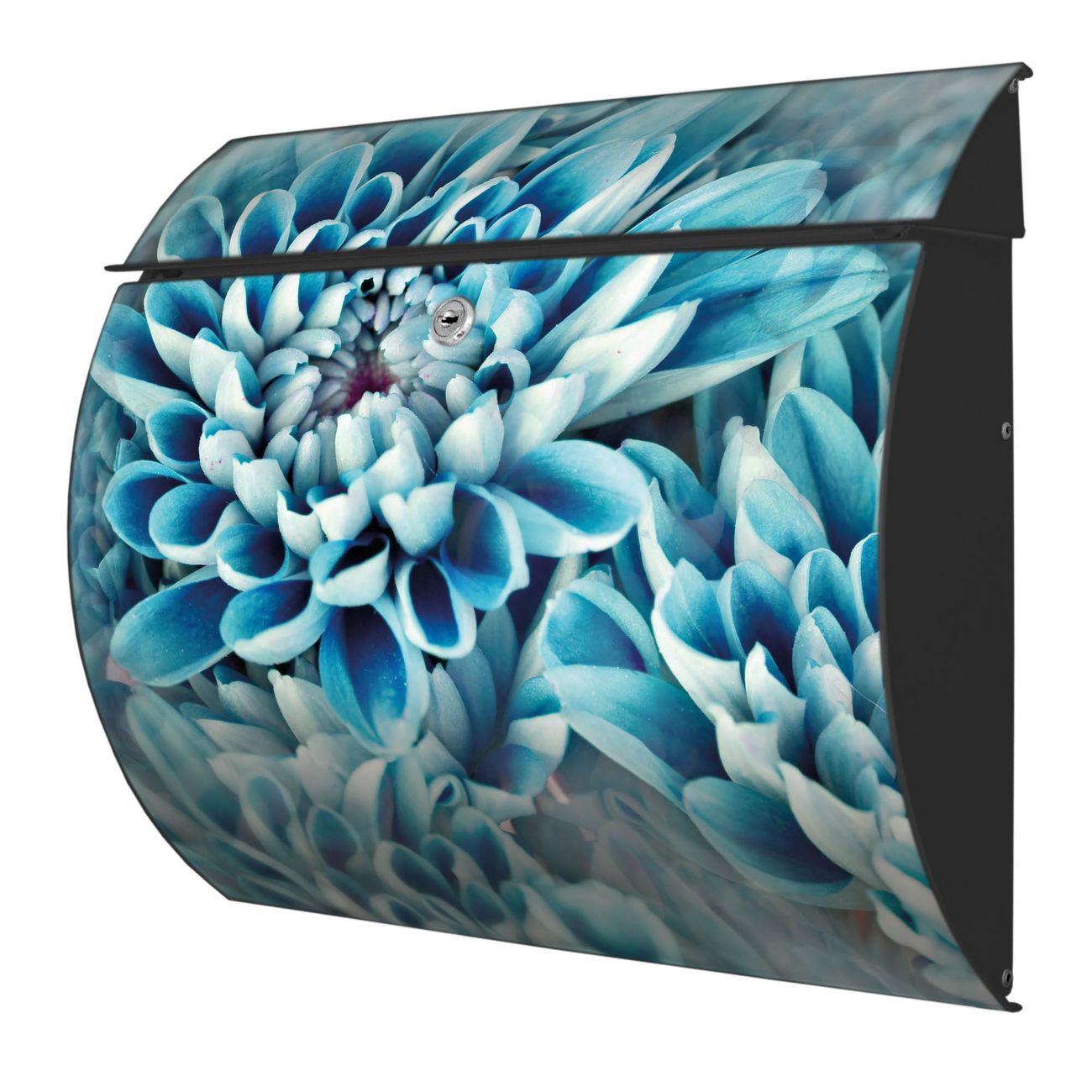 FUNKTION: DESIGN: Das Burg Wächter Modell Toscana mit Motiv Blaue Blüten hat ein sehr ansprechendes und zeitloses Design und ist besonderes wetterfest. Heben Sie Sich von der tristen grauen Masse ab, ohne auf Funktionalität zu verzichten. Wir bieten Ihnen ebenfalls Namensschilder, bereits beschriftet oder frei zu beschriften, und verschiedene selbst gestaltete Bitte-Keine-Werbung-Aufkleber. DETAILS: Der Postkasten besteht aus vollflächig verzinktem Stahl welcher in Anthrazit oder Weiß lackiert wurde oder aus Edelstahl (je nach gewählter Variante). Das Motiv besteht aus einer wetter- und UV-festen Folie, die mit einem Schutzlaminat überzogen ist, durch die Ihren Briefkasten zusätzlich vor Kratzern geschützt ist und auf den Briefkasten kaschiert wurde. Sie erhalten zu Ihrem neuen Design Briefkasten 2 Schlüssel sowie das passende Montagematerial. BANJADO: Ihr Briefkasten wird von Burg Wächter in Deutschland gefertigt und in unserer kleinen Manufaktur von Hand veredelt. Die Motivfolie ist lösungsmittelfrei und schutzlaminiert, dies sorgt für einen langen Halt. Wir legen großen Wert auf die Verbindung von Funktionalität und Design. Sie erhalten besondere Handarbeit aus Sachsen und Made in Germany.