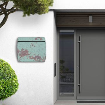 Der geschwungene Burg Wächter Briefkasten Toscana mit Motiv Blaue Struktur bietet Ihnen mit seinem großen Fassungsvermögen genügend Platz auch für große A4 Sendungen. Auf Wunsch können Sie bei uns den passenden Standfuß bestellen und so aus dem Wandbriefkasten einen Standbriefkasten machen. Der integrierte Öffnungsstopp ermöglicht eine einfache Handhabung beim Entnehmen der Post.