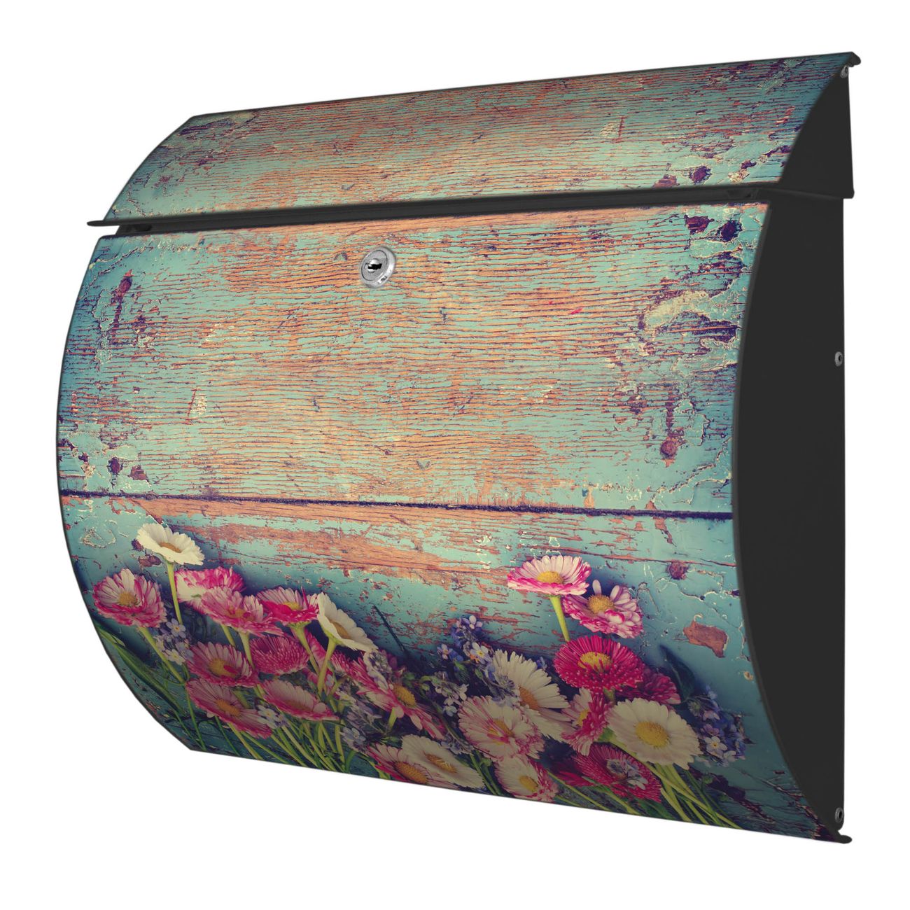 FUNKTION: DESIGN: Das Burg Wächter Modell Toscana mit Motiv Blumenpfücken hat ein sehr ansprechendes und zeitloses Design und ist besonderes wetterfest. Heben Sie Sich von der tristen grauen Masse ab, ohne auf Funktionalität zu verzichten. Wir bieten Ihnen ebenfalls Namensschilder, bereits beschriftet oder frei zu beschriften, und verschiedene selbst gestaltete Bitte-Keine-Werbung-Aufkleber. DETAILS: Der Postkasten besteht aus vollflächig verzinktem Stahl welcher in Anthrazit oder Weiß lackiert wurde oder aus Edelstahl (je nach gewählter Variante). Das Motiv besteht aus einer wetter- und UV-festen Folie, die mit einem Schutzlaminat überzogen ist, durch die Ihren Briefkasten zusätzlich vor Kratzern geschützt ist und auf den Briefkasten kaschiert wurde. Sie erhalten zu Ihrem neuen Design Briefkasten 2 Schlüssel sowie das passende Montagematerial. BANJADO: Ihr Briefkasten wird von Burg Wächter in Deutschland gefertigt und in unserer kleinen Manufaktur von Hand veredelt. Die Motivfolie ist lösungsmittelfrei und schutzlaminiert, dies sorgt für einen langen Halt. Wir legen großen Wert auf die Verbindung von Funktionalität und Design. Sie erhalten besondere Handarbeit aus Sachsen und Made in Germany.