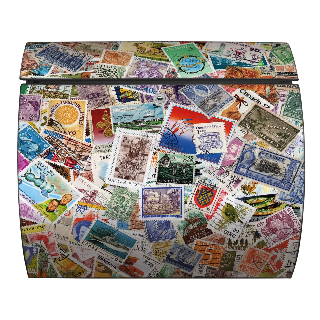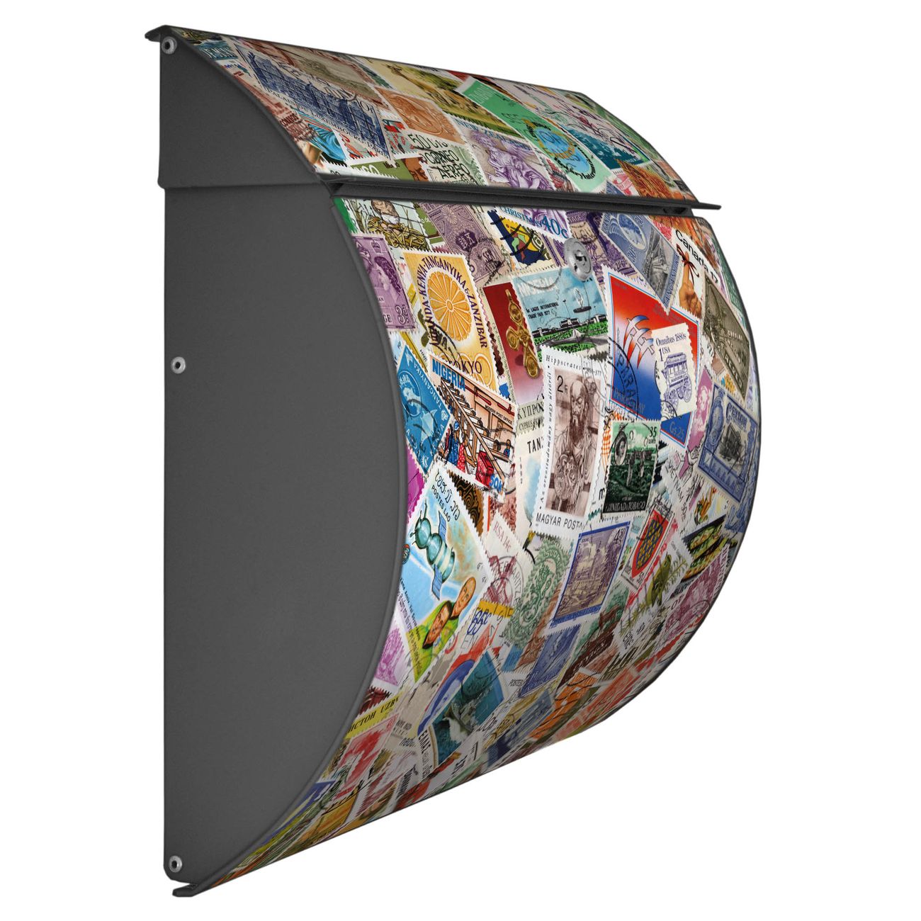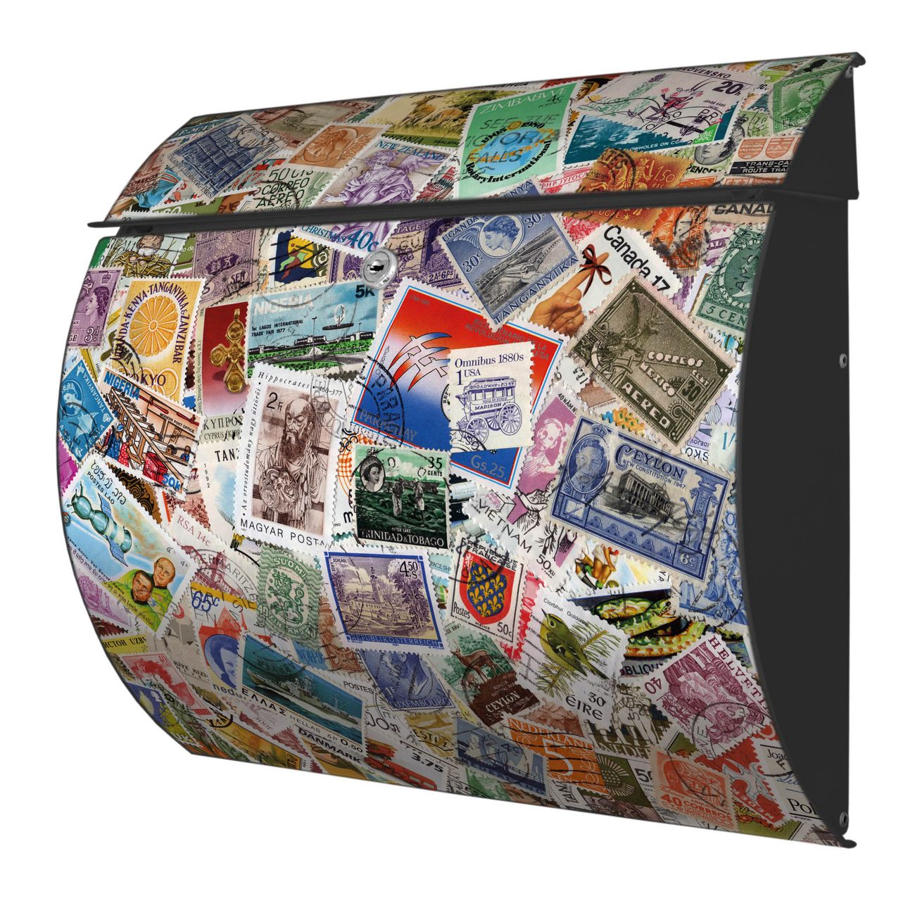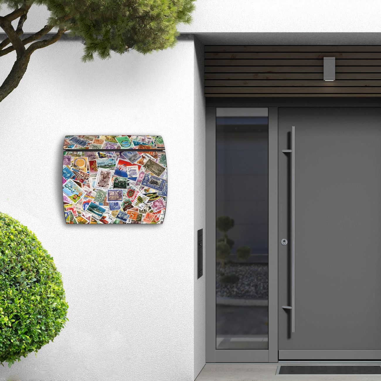 FUNKTION: DESIGN: Das Burg Wächter Modell Toscana mit Motiv Briefmarken hat ein sehr ansprechendes und zeitloses Design und ist besonderes wetterfest. Heben Sie Sich von der tristen grauen Masse ab, ohne auf Funktionalität zu verzichten. Wir bieten Ihnen ebenfalls Namensschilder, bereits beschriftet oder frei zu beschriften, und verschiedene selbst gestaltete Bitte-Keine-Werbung-Aufkleber. DETAILS: Der Postkasten besteht aus vollflächig verzinktem Stahl welcher in Anthrazit oder Weiß lackiert wurde oder aus Edelstahl (je nach gewählter Variante). Das Motiv besteht aus einer wetter- und UV-festen Folie, die mit einem Schutzlaminat überzogen ist, durch die Ihren Briefkasten zusätzlich vor Kratzern geschützt ist und auf den Briefkasten kaschiert wurde. Sie erhalten zu Ihrem neuen Design Briefkasten 2 Schlüssel sowie das passende Montagematerial. BANJADO: Ihr Briefkasten wird von Burg Wächter in Deutschland gefertigt und in unserer kleinen Manufaktur von Hand veredelt. Die Motivfolie ist lösungsmittelfrei und schutzlaminiert, dies sorgt für einen langen Halt. Wir legen großen Wert auf die Verbindung von Funktionalität und Design. Sie erhalten besondere Handarbeit aus Sachsen und Made in Germany.