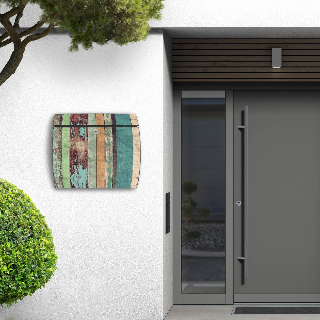 Burg-Wächter Postkasten Toscana Bunte Bretterwand