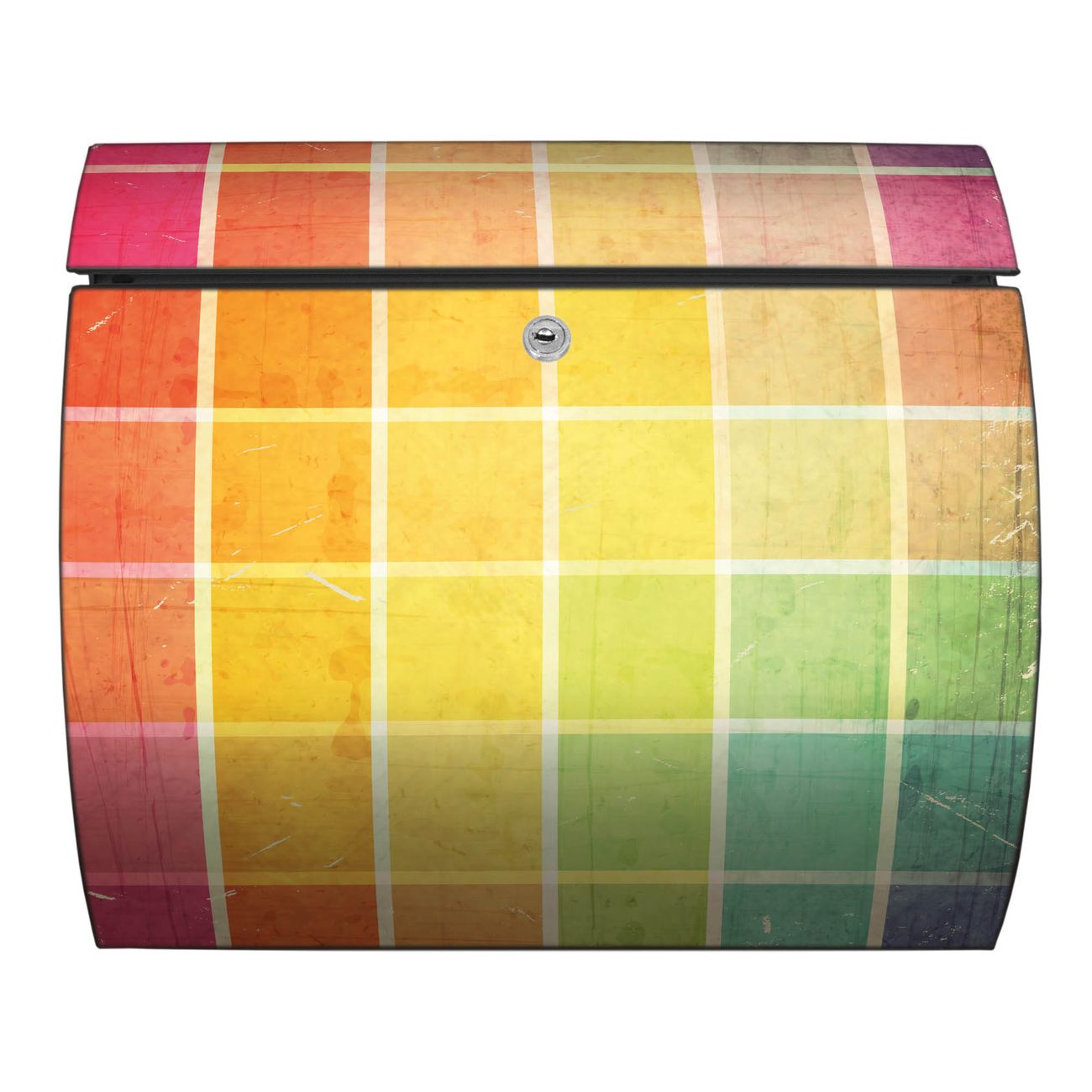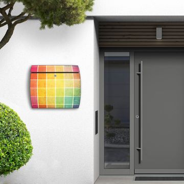 FUNKTION: DESIGN: Das Burg Wächter Modell Toscana mit Motiv Bunte Glasbausteine hat ein sehr ansprechendes und zeitloses Design und ist besonderes wetterfest. Heben Sie Sich von der tristen grauen Masse ab, ohne auf Funktionalität zu verzichten. Wir bieten Ihnen ebenfalls Namensschilder, bereits beschriftet oder frei zu beschriften, und verschiedene selbst gestaltete Bitte-Keine-Werbung-Aufkleber. DETAILS: Der Postkasten besteht aus vollflächig verzinktem Stahl welcher in Anthrazit oder Weiß lackiert wurde oder aus Edelstahl (je nach gewählter Variante). Das Motiv besteht aus einer wetter- und UV-festen Folie, die mit einem Schutzlaminat überzogen ist, durch die Ihren Briefkasten zusätzlich vor Kratzern geschützt ist und auf den Briefkasten kaschiert wurde. Sie erhalten zu Ihrem neuen Design Briefkasten 2 Schlüssel sowie das passende Montagematerial. BANJADO: Ihr Briefkasten wird von Burg Wächter in Deutschland gefertigt und in unserer kleinen Manufaktur von Hand veredelt. Die Motivfolie ist lösungsmittelfrei und schutzlaminiert, dies sorgt für einen langen Halt. Wir legen großen Wert auf die Verbindung von Funktionalität und Design. Sie erhalten besondere Handarbeit aus Sachsen und Made in Germany.