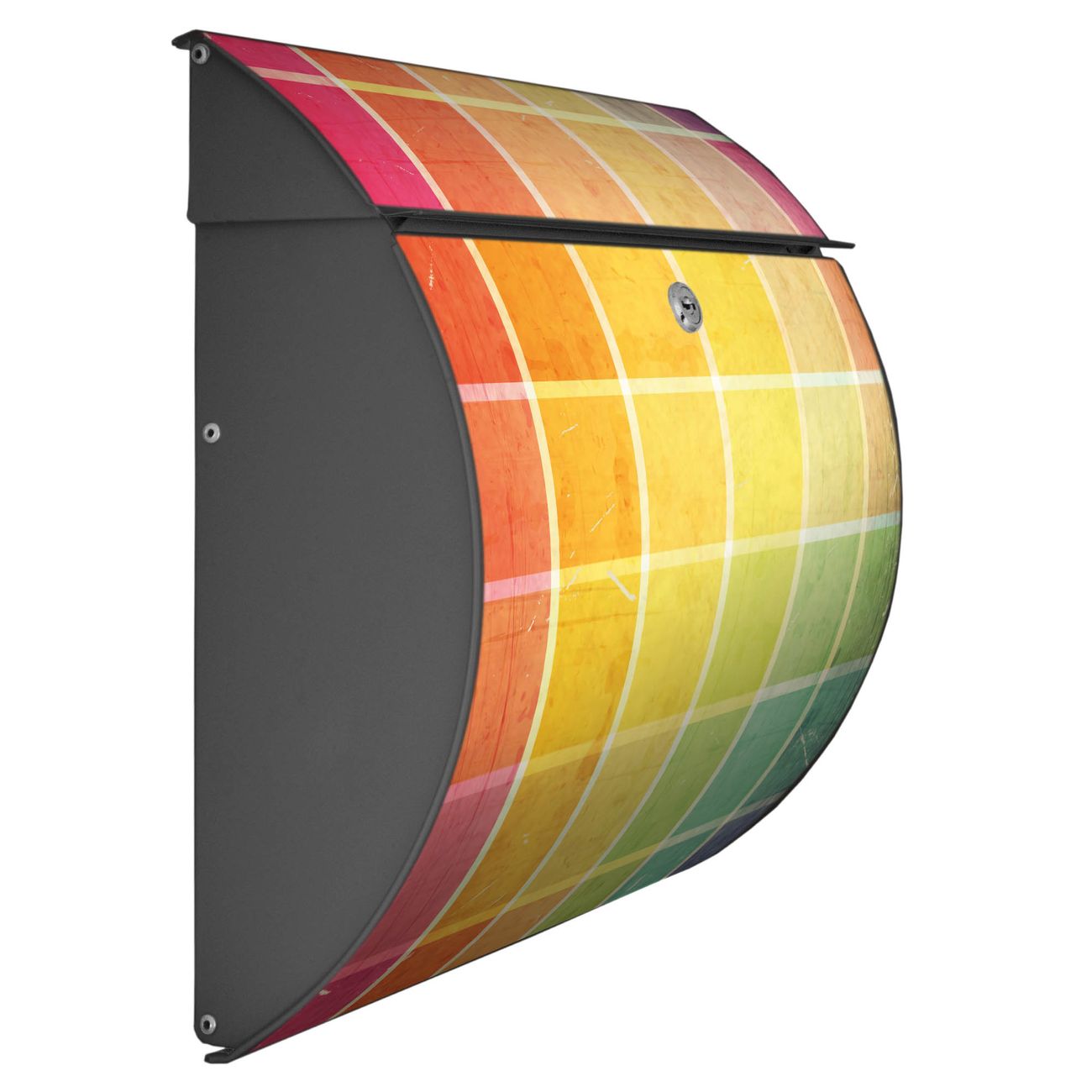 Der geschwungene Burg Wächter Briefkasten Toscana mit Motiv Bunte Glasbausteine bietet Ihnen mit seinem großen Fassungsvermögen genügend Platz auch für große A4 Sendungen. Auf Wunsch können Sie bei uns den passenden Standfuß bestellen und so aus dem Wandbriefkasten einen Standbriefkasten machen. Der integrierte Öffnungsstopp ermöglicht eine einfache Handhabung beim Entnehmen der Post.