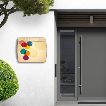 Der geschwungene Burg Wächter Briefkasten Toscana mit Motiv Bunte Kugeln bietet Ihnen mit seinem großen Fassungsvermögen genügend Platz auch für große A4 Sendungen. Auf Wunsch können Sie bei uns den passenden Standfuß bestellen und so aus dem Wandbriefkasten einen Standbriefkasten machen. Der integrierte Öffnungsstopp ermöglicht eine einfache Handhabung beim Entnehmen der Post.