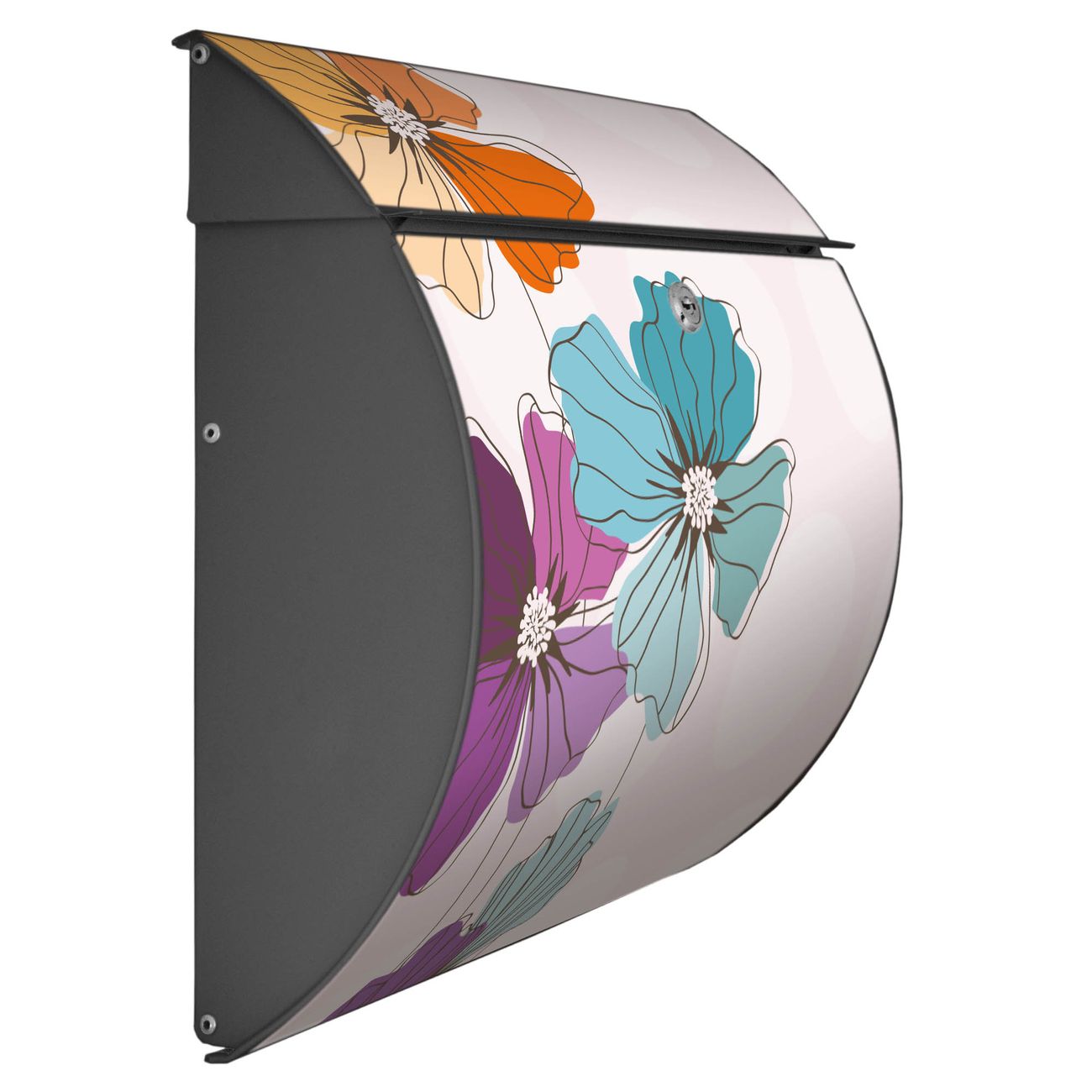 FUNKTION: DESIGN: Das Burg Wächter Modell Toscana mit Motiv Bunter Mohn hat ein sehr ansprechendes und zeitloses Design und ist besonderes wetterfest. Heben Sie Sich von der tristen grauen Masse ab, ohne auf Funktionalität zu verzichten. Wir bieten Ihnen ebenfalls Namensschilder, bereits beschriftet oder frei zu beschriften, und verschiedene selbst gestaltete Bitte-Keine-Werbung-Aufkleber. DETAILS: Der Postkasten besteht aus vollflächig verzinktem Stahl welcher in Anthrazit oder Weiß lackiert wurde oder aus Edelstahl (je nach gewählter Variante). Das Motiv besteht aus einer wetter- und UV-festen Folie, die mit einem Schutzlaminat überzogen ist, durch die Ihren Briefkasten zusätzlich vor Kratzern geschützt ist und auf den Briefkasten kaschiert wurde. Sie erhalten zu Ihrem neuen Design Briefkasten 2 Schlüssel sowie das passende Montagematerial. BANJADO: Ihr Briefkasten wird von Burg Wächter in Deutschland gefertigt und in unserer kleinen Manufaktur von Hand veredelt. Die Motivfolie ist lösungsmittelfrei und schutzlaminiert, dies sorgt für einen langen Halt. Wir legen großen Wert auf die Verbindung von Funktionalität und Design. Sie erhalten besondere Handarbeit aus Sachsen und Made in Germany.