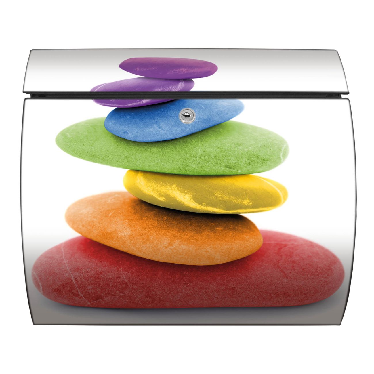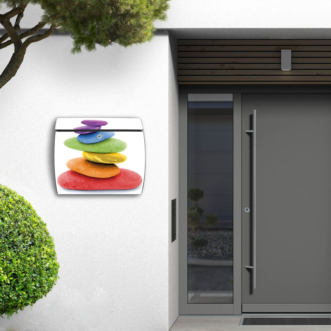 FUNKTION: DESIGN: Das Burg Wächter Modell Toscana mit Motiv Coloured Stone hat ein sehr ansprechendes und zeitloses Design und ist besonderes wetterfest. Heben Sie Sich von der tristen grauen Masse ab, ohne auf Funktionalität zu verzichten. Wir bieten Ihnen ebenfalls Namensschilder, bereits beschriftet oder frei zu beschriften, und verschiedene selbst gestaltete Bitte-Keine-Werbung-Aufkleber. DETAILS: Der Postkasten besteht aus vollflächig verzinktem Stahl welcher in Anthrazit oder Weiß lackiert wurde oder aus Edelstahl (je nach gewählter Variante). Das Motiv besteht aus einer wetter- und UV-festen Folie, die mit einem Schutzlaminat überzogen ist, durch die Ihren Briefkasten zusätzlich vor Kratzern geschützt ist und auf den Briefkasten kaschiert wurde. Sie erhalten zu Ihrem neuen Design Briefkasten 2 Schlüssel sowie das passende Montagematerial. BANJADO: Ihr Briefkasten wird von Burg Wächter in Deutschland gefertigt und in unserer kleinen Manufaktur von Hand veredelt. Die Motivfolie ist lösungsmittelfrei und schutzlaminiert, dies sorgt für einen langen Halt. Wir legen großen Wert auf die Verbindung von Funktionalität und Design. Sie erhalten besondere Handarbeit aus Sachsen und Made in Germany.
