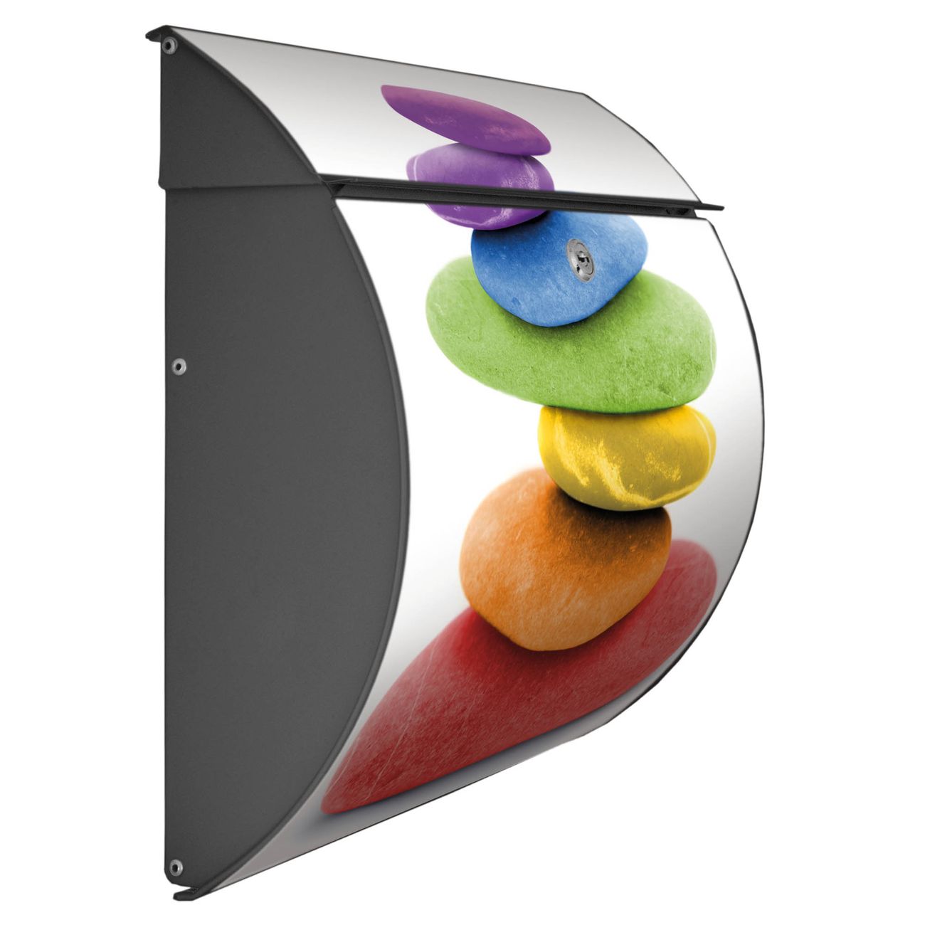 Der geschwungene Burg Wächter Briefkasten Toscana mit Motiv Coloured Stone bietet Ihnen mit seinem großen Fassungsvermögen genügend Platz auch für große A4 Sendungen. Auf Wunsch können Sie bei uns den passenden Standfuß bestellen und so aus dem Wandbriefkasten einen Standbriefkasten machen. Der integrierte Öffnungsstopp ermöglicht eine einfache Handhabung beim Entnehmen der Post.