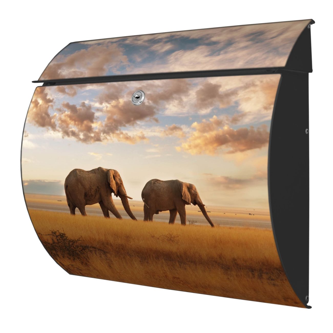 Der geschwungene Burg Wächter Briefkasten Toscana mit Motiv Elefanten bietet Ihnen mit seinem großen Fassungsvermögen genügend Platz auch für große A4 Sendungen. Auf Wunsch können Sie bei uns den passenden Standfuß bestellen und so aus dem Wandbriefkasten einen Standbriefkasten machen. Der integrierte Öffnungsstopp ermöglicht eine einfache Handhabung beim Entnehmen der Post.
