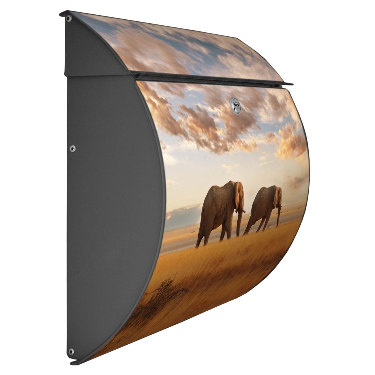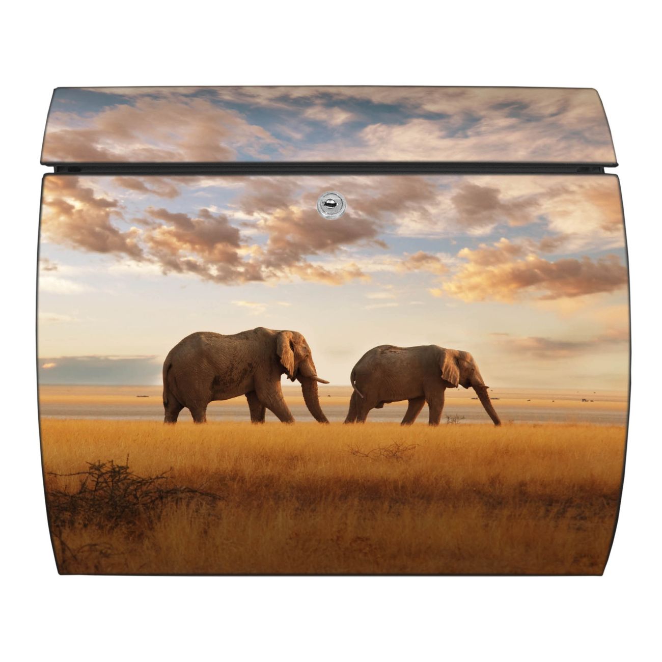 FUNKTION: DESIGN: Das Burg Wächter Modell Toscana mit Motiv Elefanten hat ein sehr ansprechendes und zeitloses Design und ist besonderes wetterfest. Heben Sie Sich von der tristen grauen Masse ab, ohne auf Funktionalität zu verzichten. Wir bieten Ihnen ebenfalls Namensschilder, bereits beschriftet oder frei zu beschriften, und verschiedene selbst gestaltete Bitte-Keine-Werbung-Aufkleber. DETAILS: Der Postkasten besteht aus vollflächig verzinktem Stahl welcher in Anthrazit oder Weiß lackiert wurde oder aus Edelstahl (je nach gewählter Variante). Das Motiv besteht aus einer wetter- und UV-festen Folie, die mit einem Schutzlaminat überzogen ist, durch die Ihren Briefkasten zusätzlich vor Kratzern geschützt ist und auf den Briefkasten kaschiert wurde. Sie erhalten zu Ihrem neuen Design Briefkasten 2 Schlüssel sowie das passende Montagematerial. BANJADO: Ihr Briefkasten wird von Burg Wächter in Deutschland gefertigt und in unserer kleinen Manufaktur von Hand veredelt. Die Motivfolie ist lösungsmittelfrei und schutzlaminiert, dies sorgt für einen langen Halt. Wir legen großen Wert auf die Verbindung von Funktionalität und Design. Sie erhalten besondere Handarbeit aus Sachsen und Made in Germany.