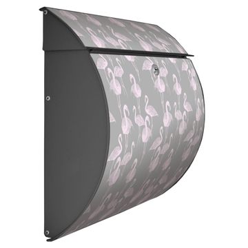 Der geschwungene Burg Wächter Briefkasten Toscana mit Motiv Flamingos Blass bietet Ihnen mit seinem großen Fassungsvermögen genügend Platz auch für große A4 Sendungen. Auf Wunsch können Sie bei uns den passenden Standfuß bestellen und so aus dem Wandbriefkasten einen Standbriefkasten machen. Der integrierte Öffnungsstopp ermöglicht eine einfache Handhabung beim Entnehmen der Post.