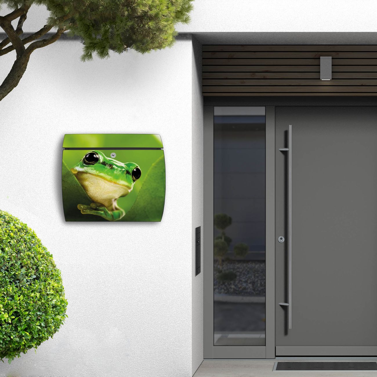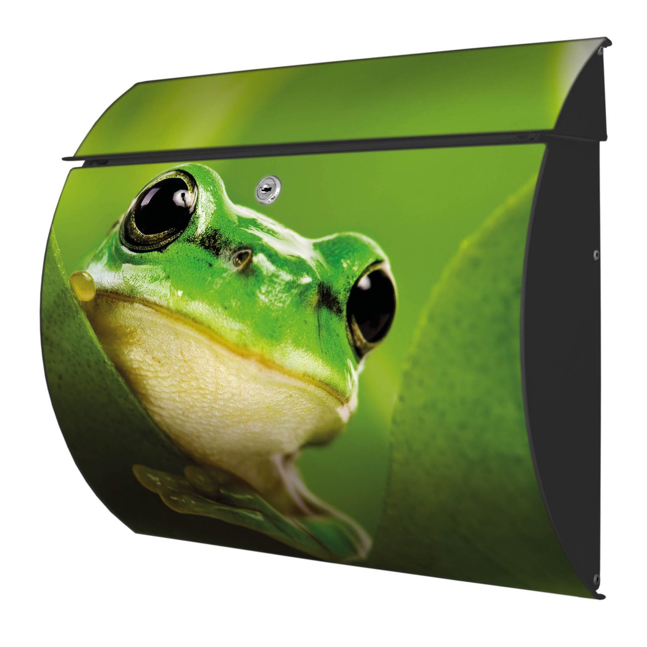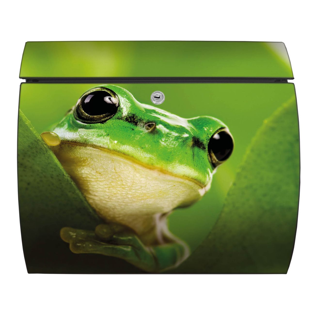 FUNKTION: DESIGN: Das Burg Wächter Modell Toscana mit Motiv Frosch hat ein sehr ansprechendes und zeitloses Design und ist besonderes wetterfest. Heben Sie Sich von der tristen grauen Masse ab, ohne auf Funktionalität zu verzichten. Wir bieten Ihnen ebenfalls Namensschilder, bereits beschriftet oder frei zu beschriften, und verschiedene selbst gestaltete Bitte-Keine-Werbung-Aufkleber. DETAILS: Der Postkasten besteht aus vollflächig verzinktem Stahl welcher in Anthrazit oder Weiß lackiert wurde oder aus Edelstahl (je nach gewählter Variante). Das Motiv besteht aus einer wetter- und UV-festen Folie, die mit einem Schutzlaminat überzogen ist, durch die Ihren Briefkasten zusätzlich vor Kratzern geschützt ist und auf den Briefkasten kaschiert wurde. Sie erhalten zu Ihrem neuen Design Briefkasten 2 Schlüssel sowie das passende Montagematerial. BANJADO: Ihr Briefkasten wird von Burg Wächter in Deutschland gefertigt und in unserer kleinen Manufaktur von Hand veredelt. Die Motivfolie ist lösungsmittelfrei und schutzlaminiert, dies sorgt für einen langen Halt. Wir legen großen Wert auf die Verbindung von Funktionalität und Design. Sie erhalten besondere Handarbeit aus Sachsen und Made in Germany.