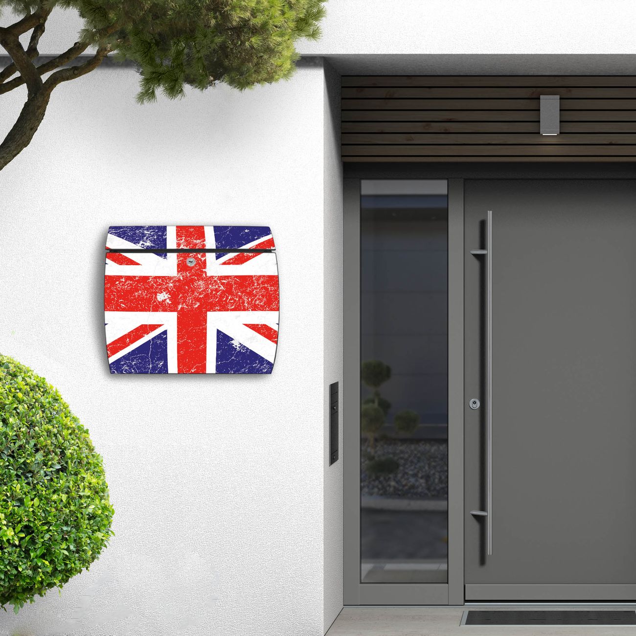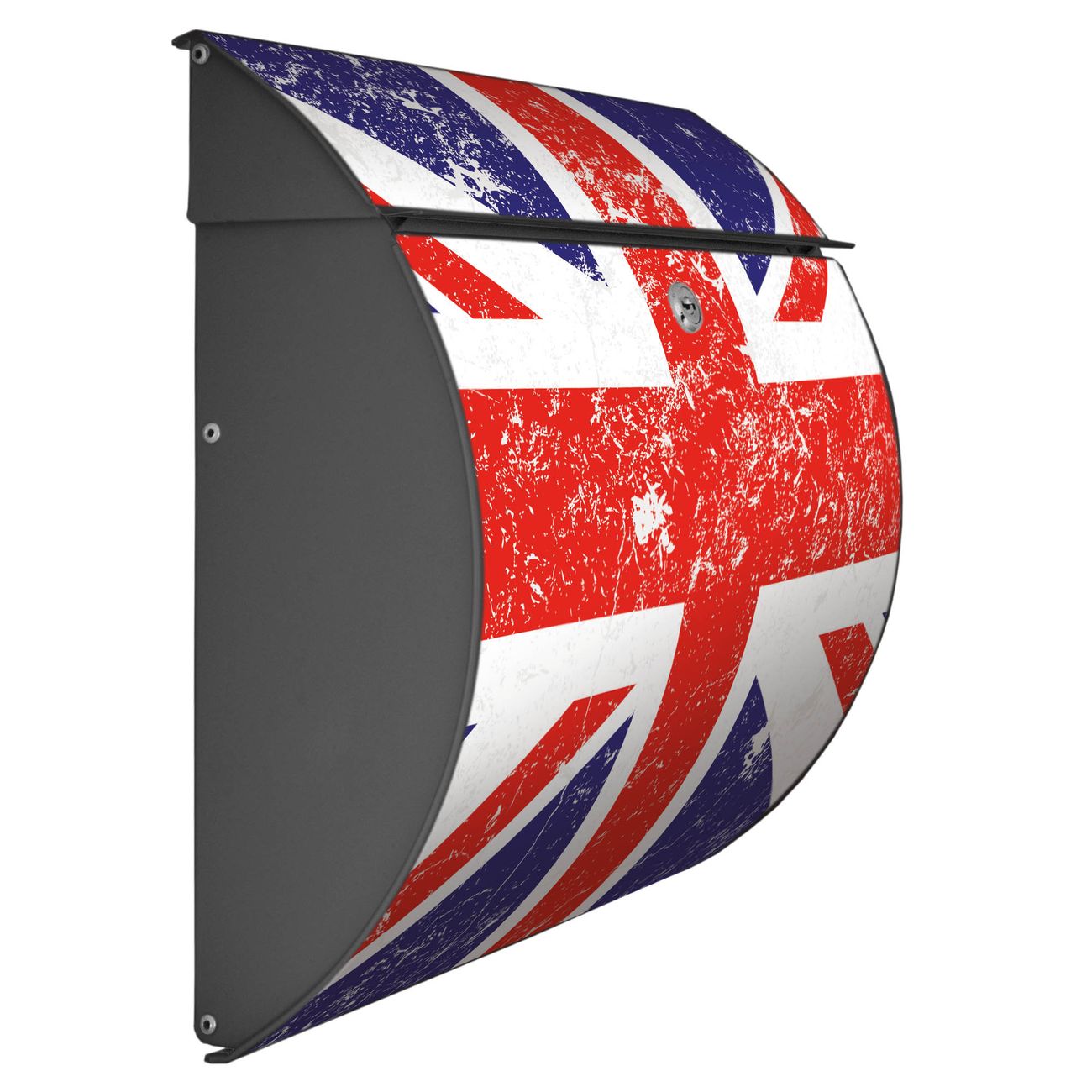 FUNKTION: DESIGN: Das Burg Wächter Modell Toscana mit Motiv Great Britain hat ein sehr ansprechendes und zeitloses Design und ist besonderes wetterfest. Heben Sie Sich von der tristen grauen Masse ab, ohne auf Funktionalität zu verzichten. Wir bieten Ihnen ebenfalls Namensschilder, bereits beschriftet oder frei zu beschriften, und verschiedene selbst gestaltete Bitte-Keine-Werbung-Aufkleber. DETAILS: Der Postkasten besteht aus vollflächig verzinktem Stahl welcher in Anthrazit oder Weiß lackiert wurde oder aus Edelstahl (je nach gewählter Variante). Das Motiv besteht aus einer wetter- und UV-festen Folie, die mit einem Schutzlaminat überzogen ist, durch die Ihren Briefkasten zusätzlich vor Kratzern geschützt ist und auf den Briefkasten kaschiert wurde. Sie erhalten zu Ihrem neuen Design Briefkasten 2 Schlüssel sowie das passende Montagematerial. BANJADO: Ihr Briefkasten wird von Burg Wächter in Deutschland gefertigt und in unserer kleinen Manufaktur von Hand veredelt. Die Motivfolie ist lösungsmittelfrei und schutzlaminiert, dies sorgt für einen langen Halt. Wir legen großen Wert auf die Verbindung von Funktionalität und Design. Sie erhalten besondere Handarbeit aus Sachsen und Made in Germany.