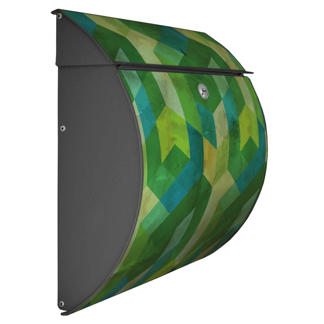 FUNKTION: DESIGN: Das Burg Wächter Modell Toscana mit Motiv Grüne Würfel hat ein sehr ansprechendes und zeitloses Design und ist besonderes wetterfest. Heben Sie Sich von der tristen grauen Masse ab, ohne auf Funktionalität zu verzichten. Wir bieten Ihnen ebenfalls Namensschilder, bereits beschriftet oder frei zu beschriften, und verschiedene selbst gestaltete Bitte-Keine-Werbung-Aufkleber. DETAILS: Der Postkasten besteht aus vollflächig verzinktem Stahl welcher in Anthrazit oder Weiß lackiert wurde oder aus Edelstahl (je nach gewählter Variante). Das Motiv besteht aus einer wetter- und UV-festen Folie, die mit einem Schutzlaminat überzogen ist, durch die Ihren Briefkasten zusätzlich vor Kratzern geschützt ist und auf den Briefkasten kaschiert wurde. Sie erhalten zu Ihrem neuen Design Briefkasten 2 Schlüssel sowie das passende Montagematerial. BANJADO: Ihr Briefkasten wird von Burg Wächter in Deutschland gefertigt und in unserer kleinen Manufaktur von Hand veredelt. Die Motivfolie ist lösungsmittelfrei und schutzlaminiert, dies sorgt für einen langen Halt. Wir legen großen Wert auf die Verbindung von Funktionalität und Design. Sie erhalten besondere Handarbeit aus Sachsen und Made in Germany.