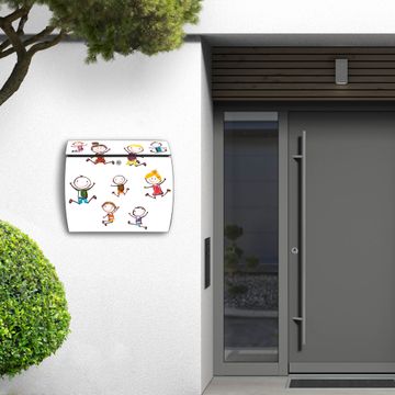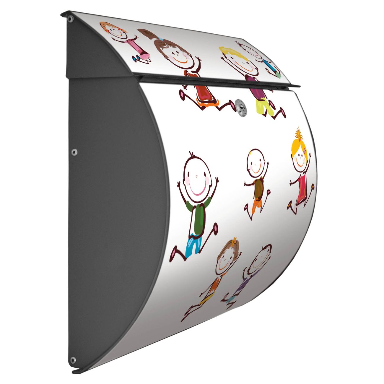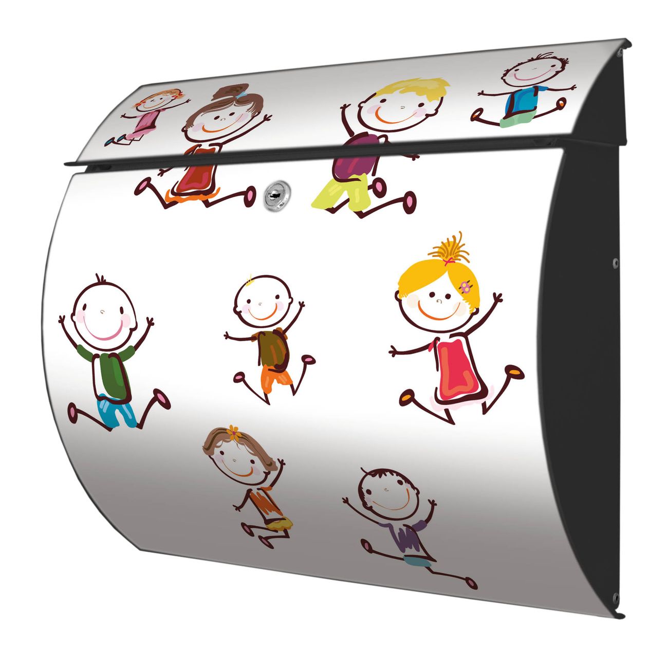 FUNKTION: DESIGN: Das Burg Wächter Modell Toscana mit Motiv Happy Kids hat ein sehr ansprechendes und zeitloses Design und ist besonderes wetterfest. Heben Sie Sich von der tristen grauen Masse ab, ohne auf Funktionalität zu verzichten. Wir bieten Ihnen ebenfalls Namensschilder, bereits beschriftet oder frei zu beschriften, und verschiedene selbst gestaltete Bitte-Keine-Werbung-Aufkleber. DETAILS: Der Postkasten besteht aus vollflächig verzinktem Stahl welcher in Anthrazit oder Weiß lackiert wurde oder aus Edelstahl (je nach gewählter Variante). Das Motiv besteht aus einer wetter- und UV-festen Folie, die mit einem Schutzlaminat überzogen ist, durch die Ihren Briefkasten zusätzlich vor Kratzern geschützt ist und auf den Briefkasten kaschiert wurde. Sie erhalten zu Ihrem neuen Design Briefkasten 2 Schlüssel sowie das passende Montagematerial. BANJADO: Ihr Briefkasten wird von Burg Wächter in Deutschland gefertigt und in unserer kleinen Manufaktur von Hand veredelt. Die Motivfolie ist lösungsmittelfrei und schutzlaminiert, dies sorgt für einen langen Halt. Wir legen großen Wert auf die Verbindung von Funktionalität und Design. Sie erhalten besondere Handarbeit aus Sachsen und Made in Germany.