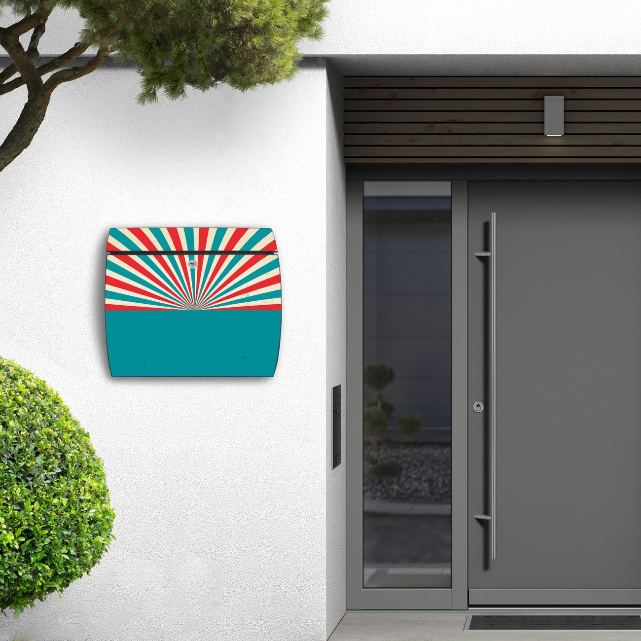 FUNKTION: DESIGN: Das Burg Wächter Modell Toscana mit Motiv Hello hat ein sehr ansprechendes und zeitloses Design und ist besonderes wetterfest. Heben Sie Sich von der tristen grauen Masse ab, ohne auf Funktionalität zu verzichten. Wir bieten Ihnen ebenfalls Namensschilder, bereits beschriftet oder frei zu beschriften, und verschiedene selbst gestaltete Bitte-Keine-Werbung-Aufkleber. DETAILS: Der Postkasten besteht aus vollflächig verzinktem Stahl welcher in Anthrazit oder Weiß lackiert wurde oder aus Edelstahl (je nach gewählter Variante). Das Motiv besteht aus einer wetter- und UV-festen Folie, die mit einem Schutzlaminat überzogen ist, durch die Ihren Briefkasten zusätzlich vor Kratzern geschützt ist und auf den Briefkasten kaschiert wurde. Sie erhalten zu Ihrem neuen Design Briefkasten 2 Schlüssel sowie das passende Montagematerial. BANJADO: Ihr Briefkasten wird von Burg Wächter in Deutschland gefertigt und in unserer kleinen Manufaktur von Hand veredelt. Die Motivfolie ist lösungsmittelfrei und schutzlaminiert, dies sorgt für einen langen Halt. Wir legen großen Wert auf die Verbindung von Funktionalität und Design. Sie erhalten besondere Handarbeit aus Sachsen und Made in Germany.